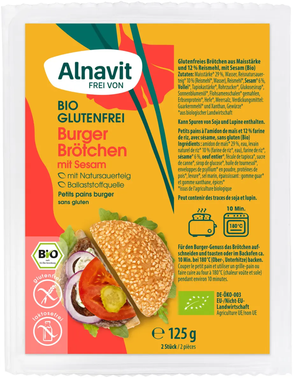29 % kukoricakeményítő[1], víz, 10 % természetes rizskovász[1] (rizsliszt[1], víz), rizsliszt[1], 6 % szezámmag[1], egész tojás[1], tápióka keményítő[1], rohrzucker[1], glükózszirup[1], napraforgóolaj[1], őrölt útifű maghéj[1], borsó fehérje[1], élesztő[1], tengeri só, sűrítőszer (guarmag liszt[1], Xanthan), fűszer[1]