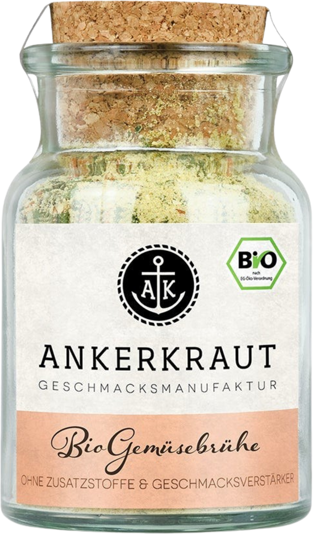 Az Ankerkraut Bio zöldségleves támogatja a gyors konyhát, kiváló minőségű alapanyagokról való lemondás nélkül! A klasszikus leves-összetevők, például tengeri só, zeller, lestyán, petrezselyem és szerecsendió fűszeres keverékével finom levesalapot készíthet sok-sok receptötlethez! A finom por természetesen remek fűszerezéshez is, például zöldséges ételekhez, szószokhoz vagy húsos ragukhoz. A recept nem tartalmaz mesterséges ízfokozókat, adalékanyagokat és hozzáadott cukrot!