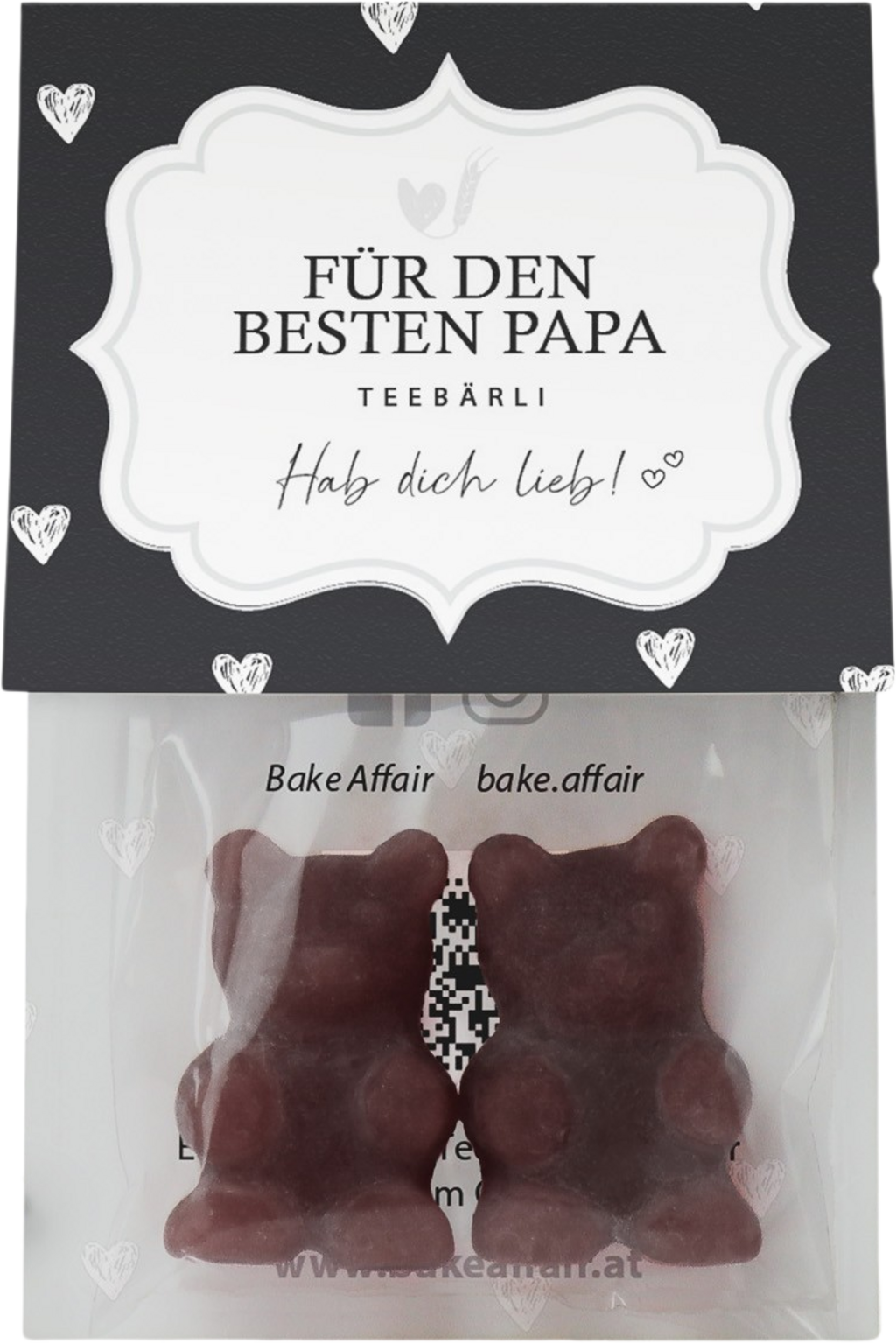 A Bake Affair "A legjobb apukának" ("Für den besten Papa") teamacik biztosan nagyon boldoggá teszik az apukákat. A csomagolásukon a "Hab dich lieb", azaz "Szeretlek" felirat olvasható. Kóla ízükkel egészen különleges jelleget kölcsönöznek a forró italnak. Természetesen a teamacik közvetlenül, nassolnivalóként is fogyaszthatók.
