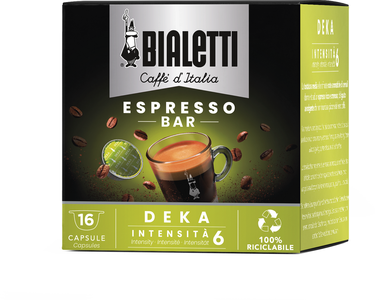 A Bialetti Deca keverék tökéletes mindazok számára, akik alacsony koffeintartalmú espressot szeretnének inni anélkül, hogy le kellene mondaniuk az autentikus olasz kávé ízéről. Tapasztalja meg a frissen őrölt kávé aromáját minden kapszulában.