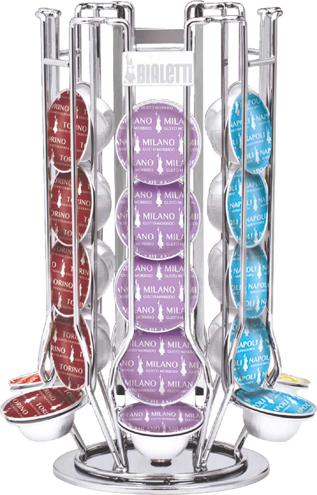 Tartsa kávékapszuláit stílusosan és praktikusan rendszerezetten ezzel a forgatható kapszulatartó toronnyal. A modern kialakítás négy masszív acéloszloppal akár 28 kapszulát is képes befogadni, így mindig kéznél lesz a megfelelő kapszula – rendetlenség nélkül.