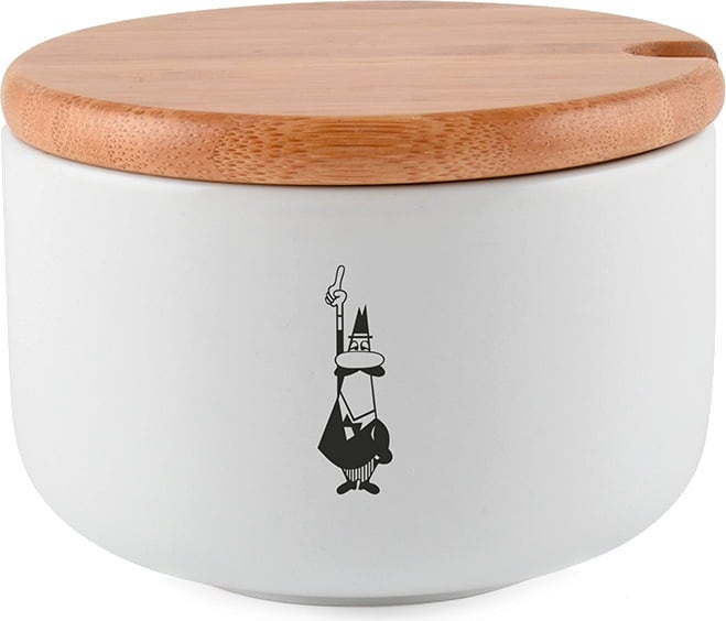Akár a kávéfőző mellett, akár a terített asztalon helyezzük el: a gyönyörűen formázott, kiváló minőségű porcelánból készült cukortartó az ikonikus Bialetti férfival mindig remekül mutat.