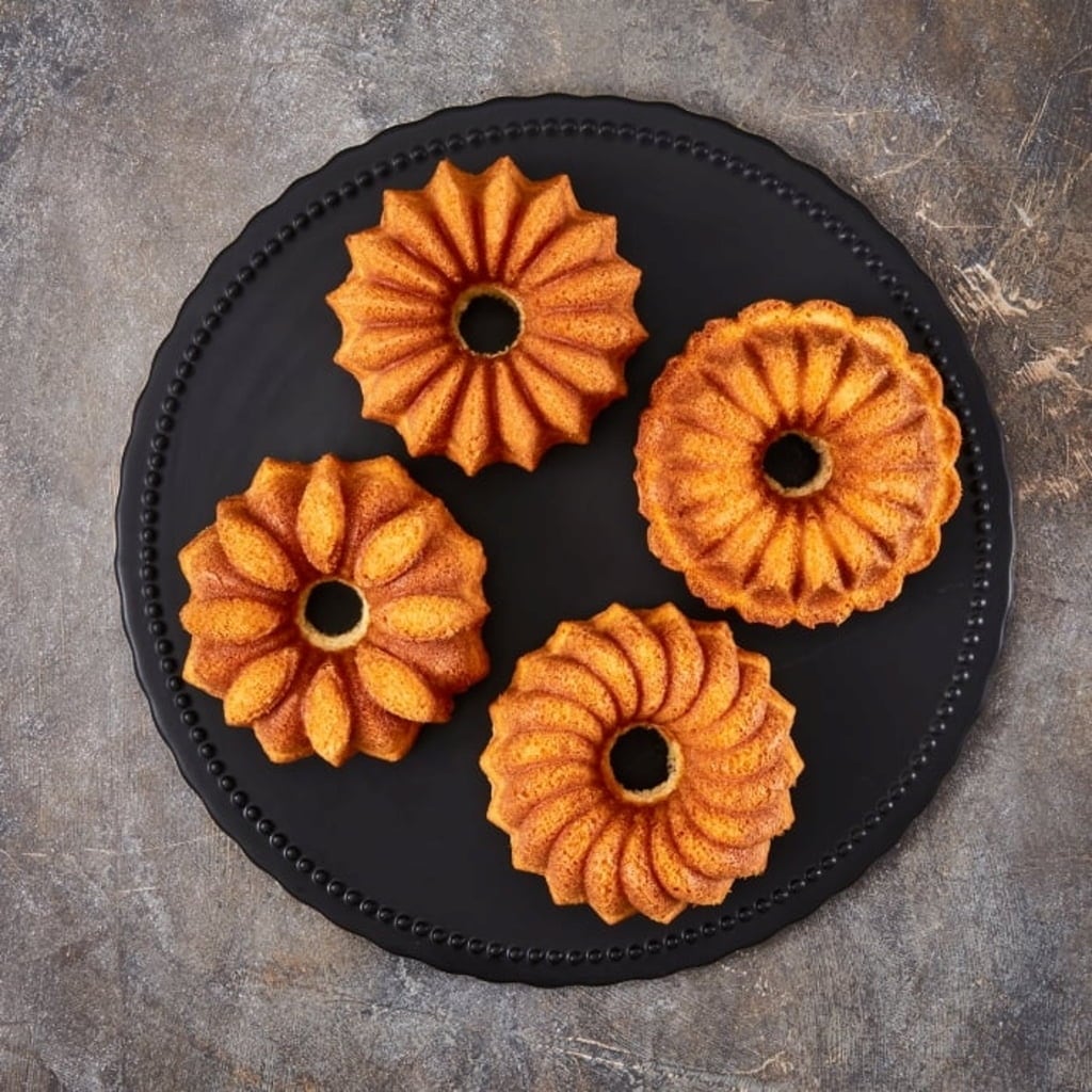 A nehéz, robusztus anyag optimális hőeloszlást garantál az egyenletes barnulásért és a sütemények egyenletes sütéséért. Az egyes formák egyedi kontúrjai igazi kincsekké varázsolják a süteményeket.