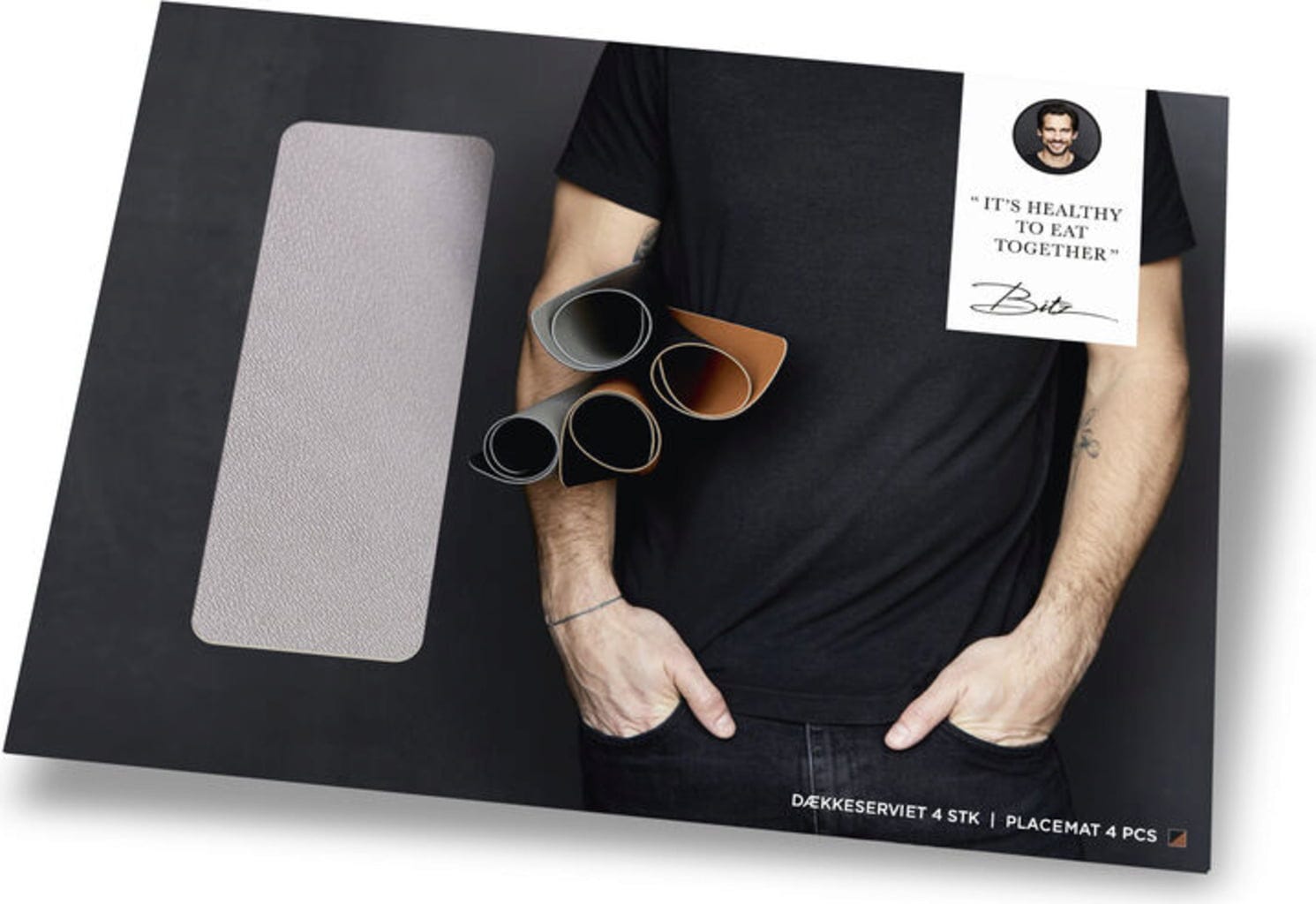 Bitz 4 db-os tányéralátét szett, fekete/szürke