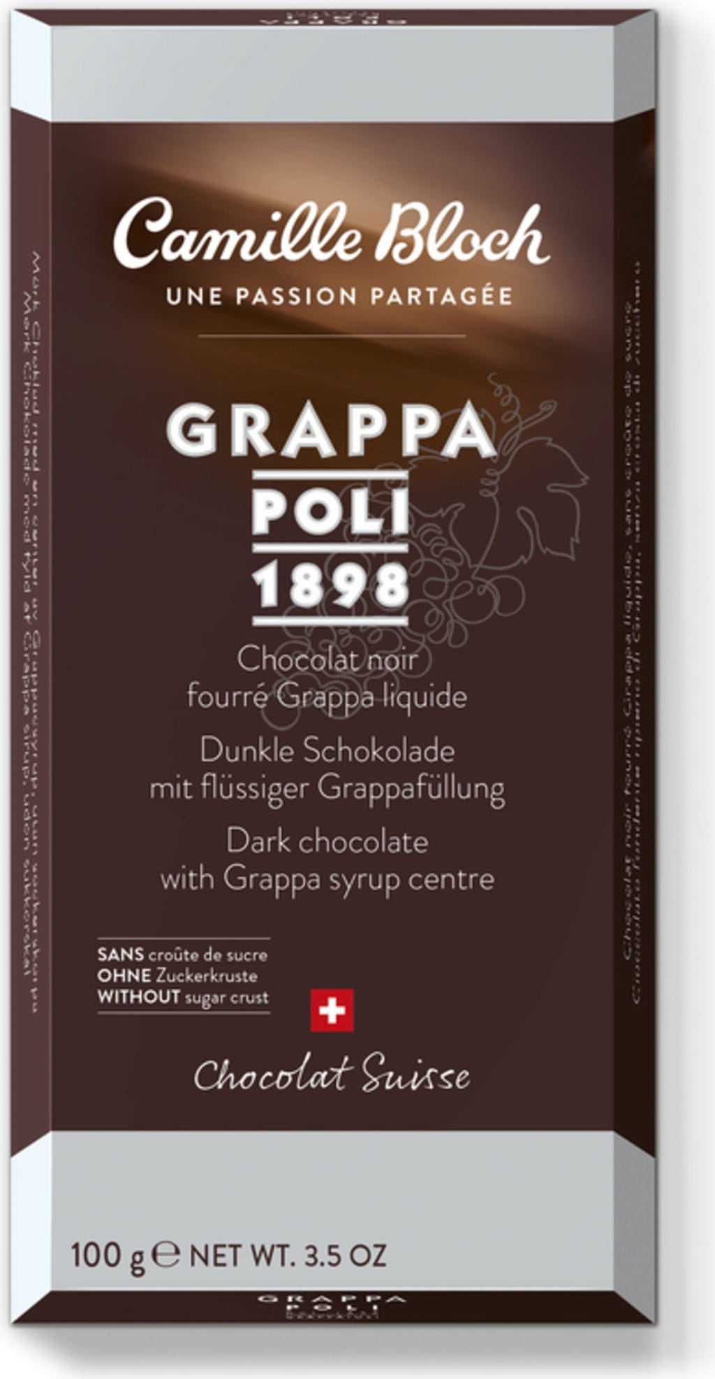 Camille Bloch Csokoládé likőr töltelékkel - cukorkéreg nélkül, Grappa (100 g)