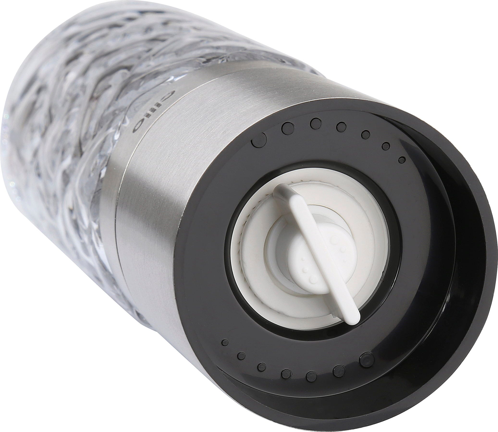 A cilio CRISTALLO fűszermalmok sokoldalú kísérők, amelyek a modern konyhában és az ünnepi asztalon egyaránt megállják a helyüket. A rendkívül kemény, nagy teljesítményű kerámia őrlőszerkezet könnyedén megbirkózik a borsszemekkel és a tengeri sóval is, emellett hosszú élettartamot garantál. Ezenkívül az őrlési finomság a felső csavar segítségével fokozatmentesen állítható.