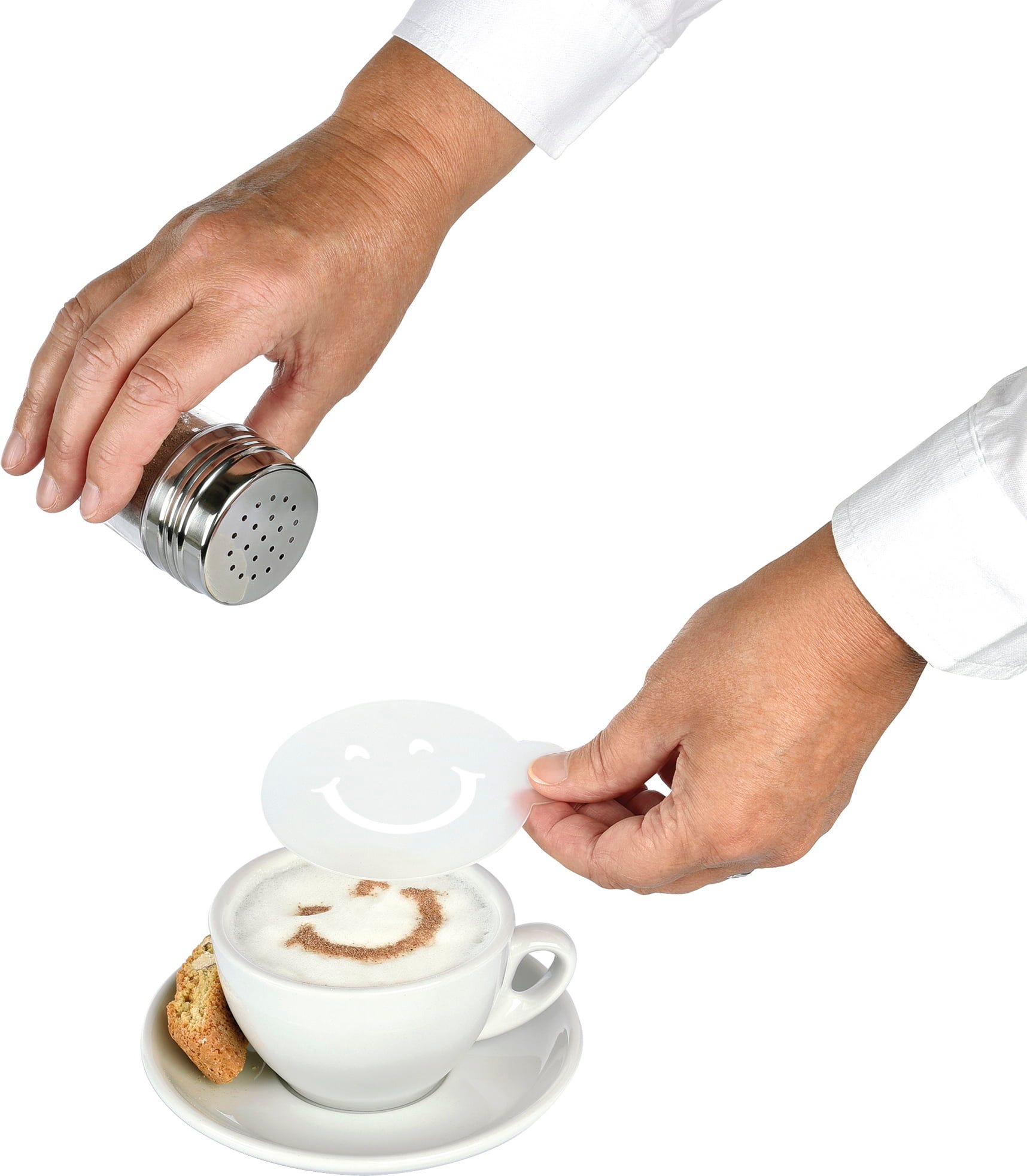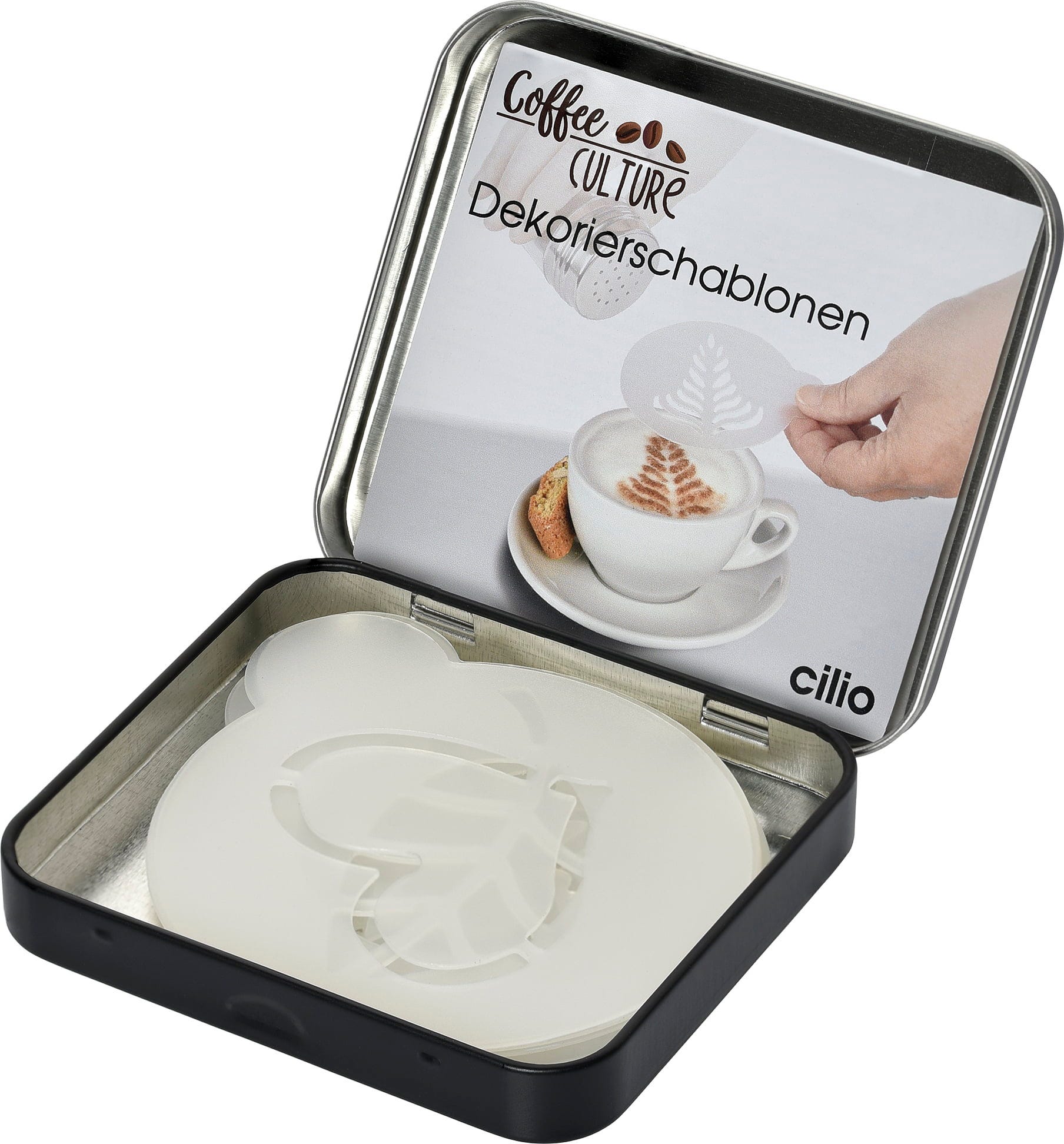 A cilio Dekorációs sablonokkal otthoni baristává válhat, és pillanatok alatt kis műalkotásokat varázsolhat a Cappuccino, Latte macchiato vagy kakaó tetejére. De desszertek díszítéséhez is ideális.