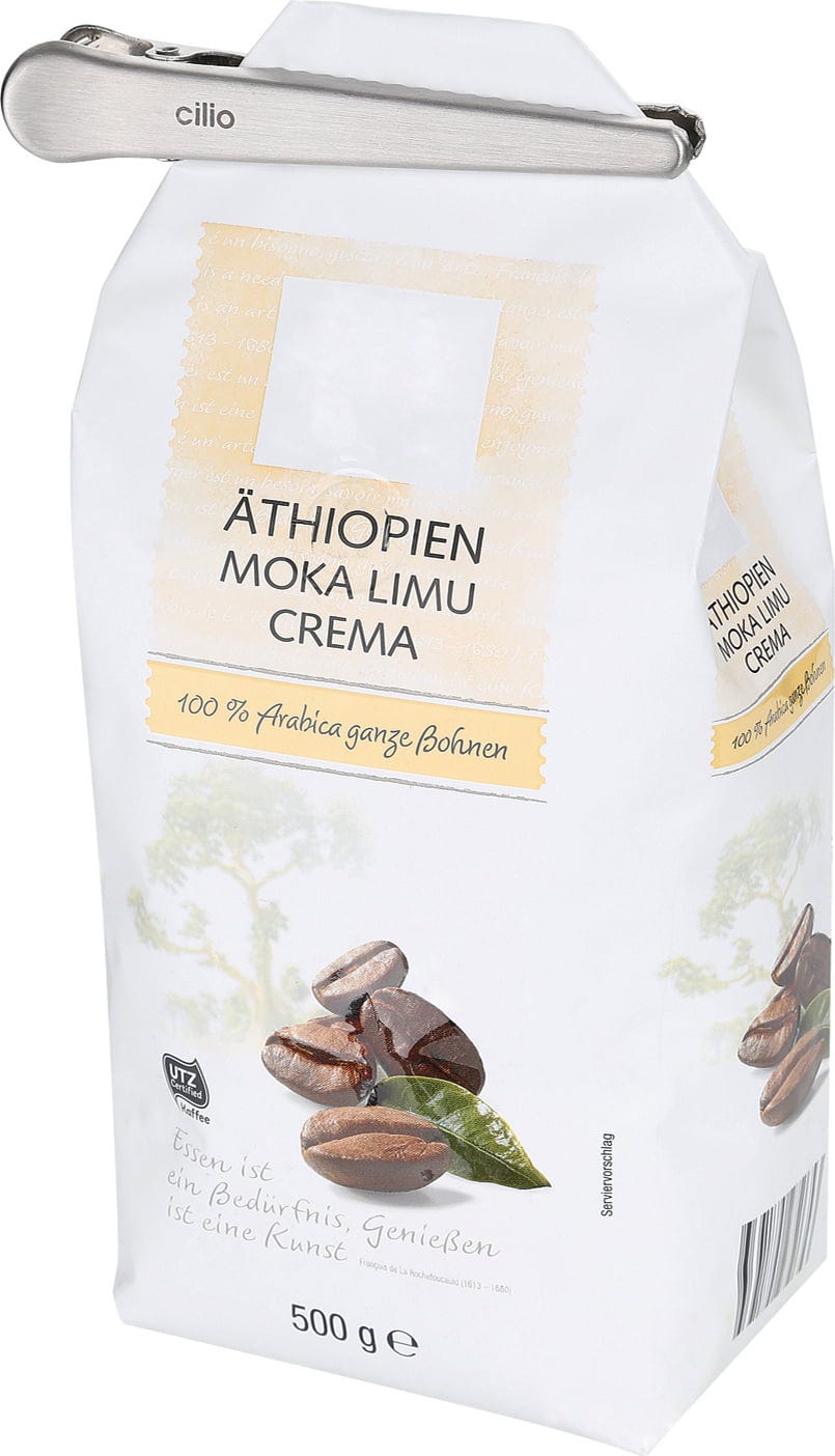 Óvja a szemes vagy őrölt kávét stílusosan a nedvességtől és az aroma elvesztésétől. A cilio Kávézacskó csipesz 2 db-os szett egy olyan funkcionális kiegészítő, amely minimalista designjának köszönhetően minden modern konyhába illik. A rozsdamentes acélból készült robusztus kialakítás fenntartható alternatívává teszi ezeket a csipeszeket a nem stabil műanyag csipeszekkel szemben.