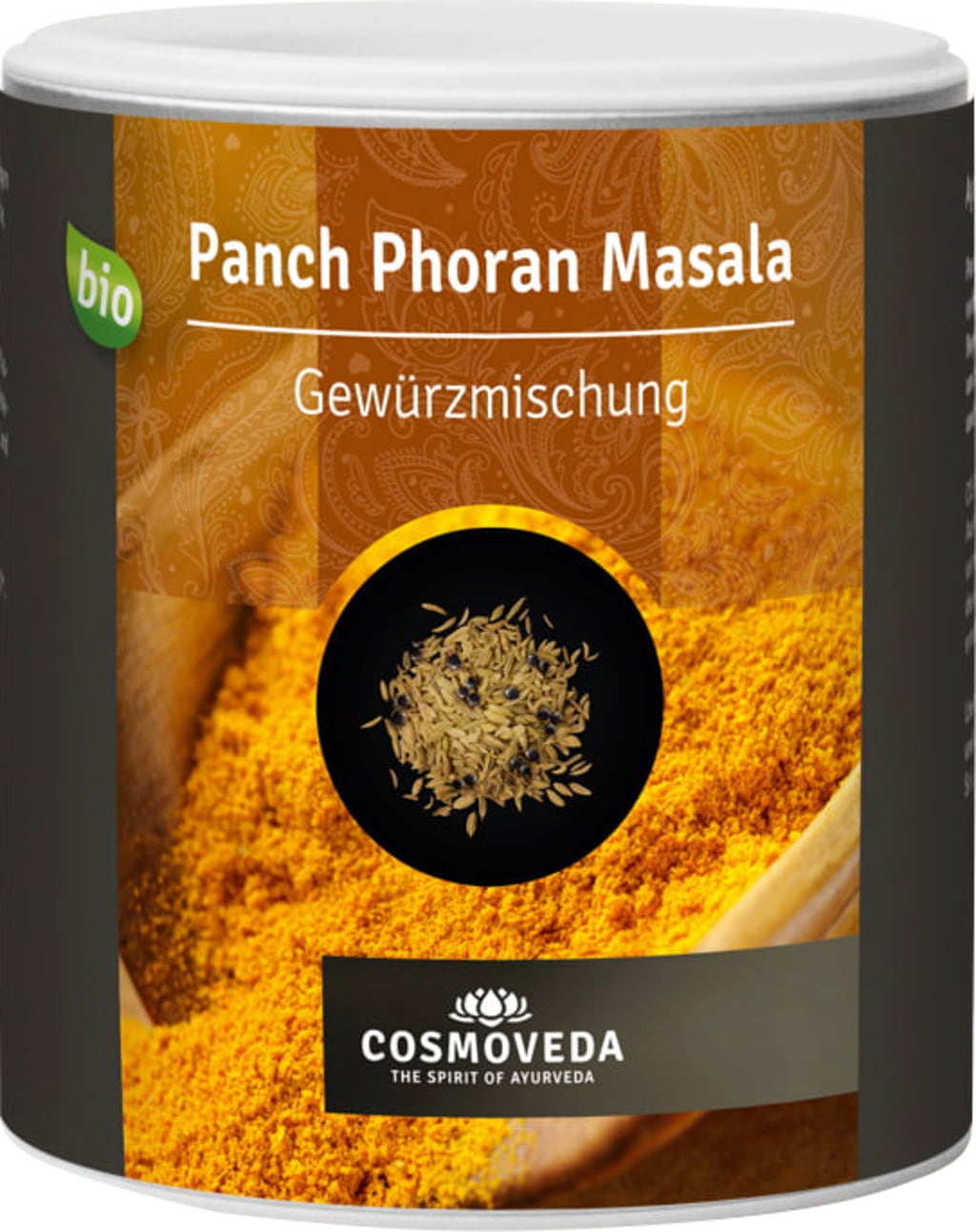 A COSMOVEDA BIO Punch Phoran egész fűszerek egy speciálisan összeállított ájurvédikus keveréke, amelyet a főzés elején pörkölnek meg. Támogatja az emésztést, valamint autentikus ízt ad az indiai és ayurvédikus ételeknek.