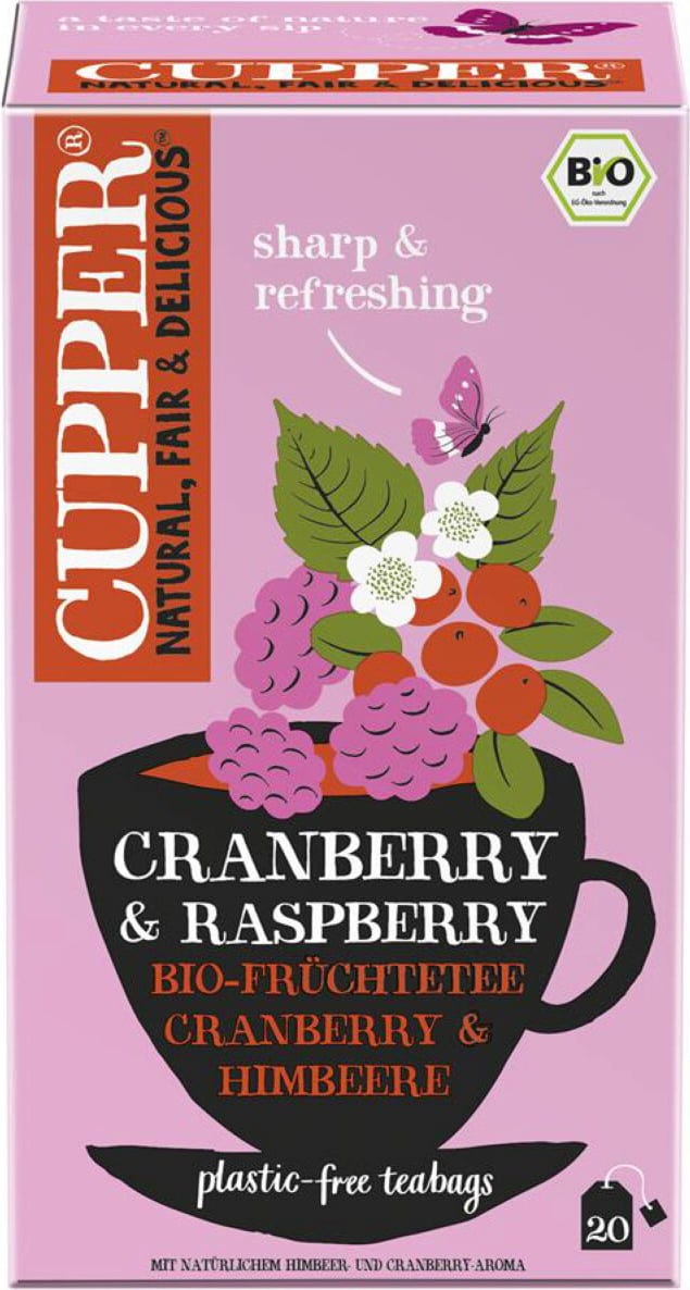 CUPPER Bio vörösáfonya és málna tea, 20 teafilter (50 g)