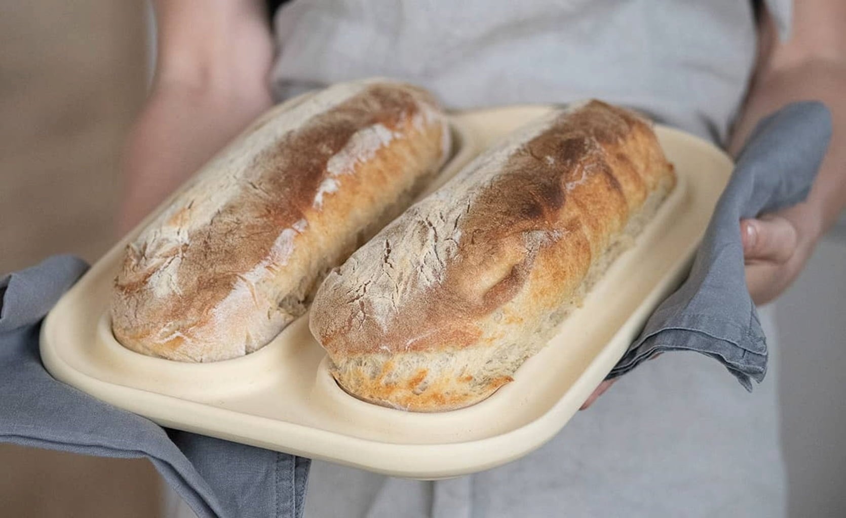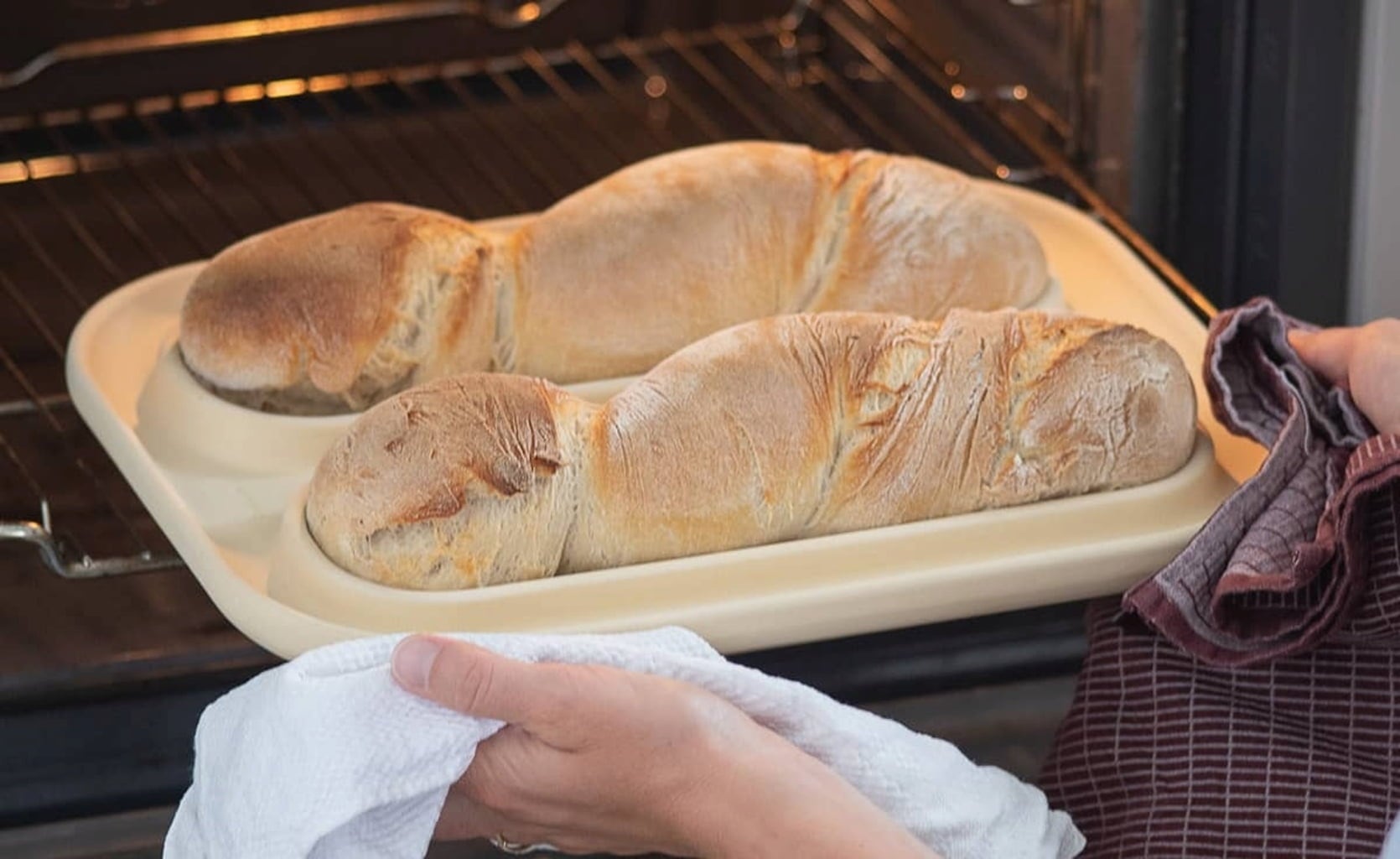 A szabadalmaztatott barázda a sütőforma titka. Sütés előtt töltse meg vízzel, így egyenletes párolgást nyújt a sütőben, egy nedvességpajzsot létrehozva a pékáru körül. A bagett így csodálatosan ropogós héjat fejleszt ki, miközben belül csodálatosan könnyed és légies marad.
