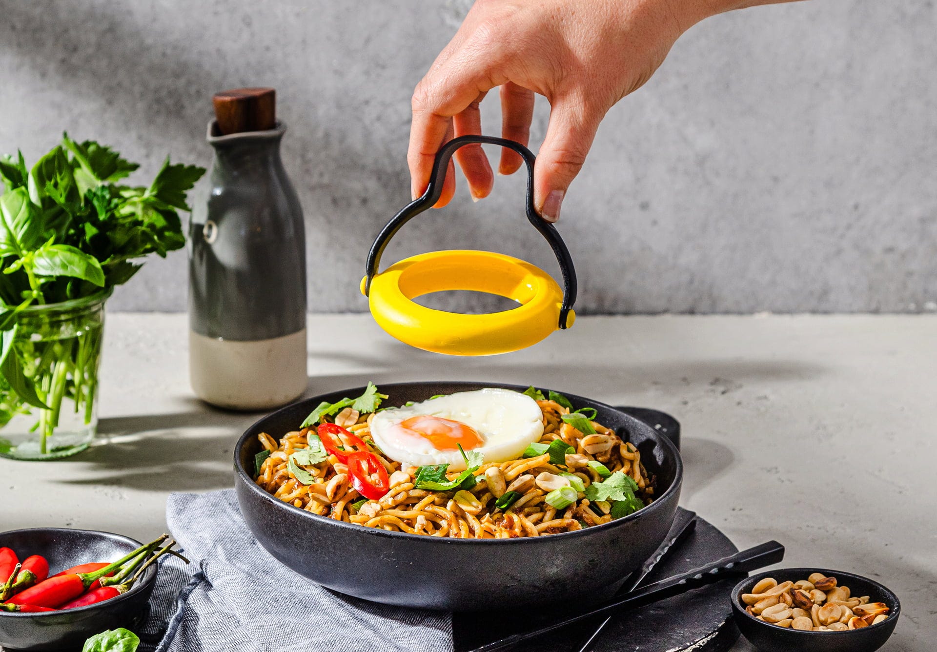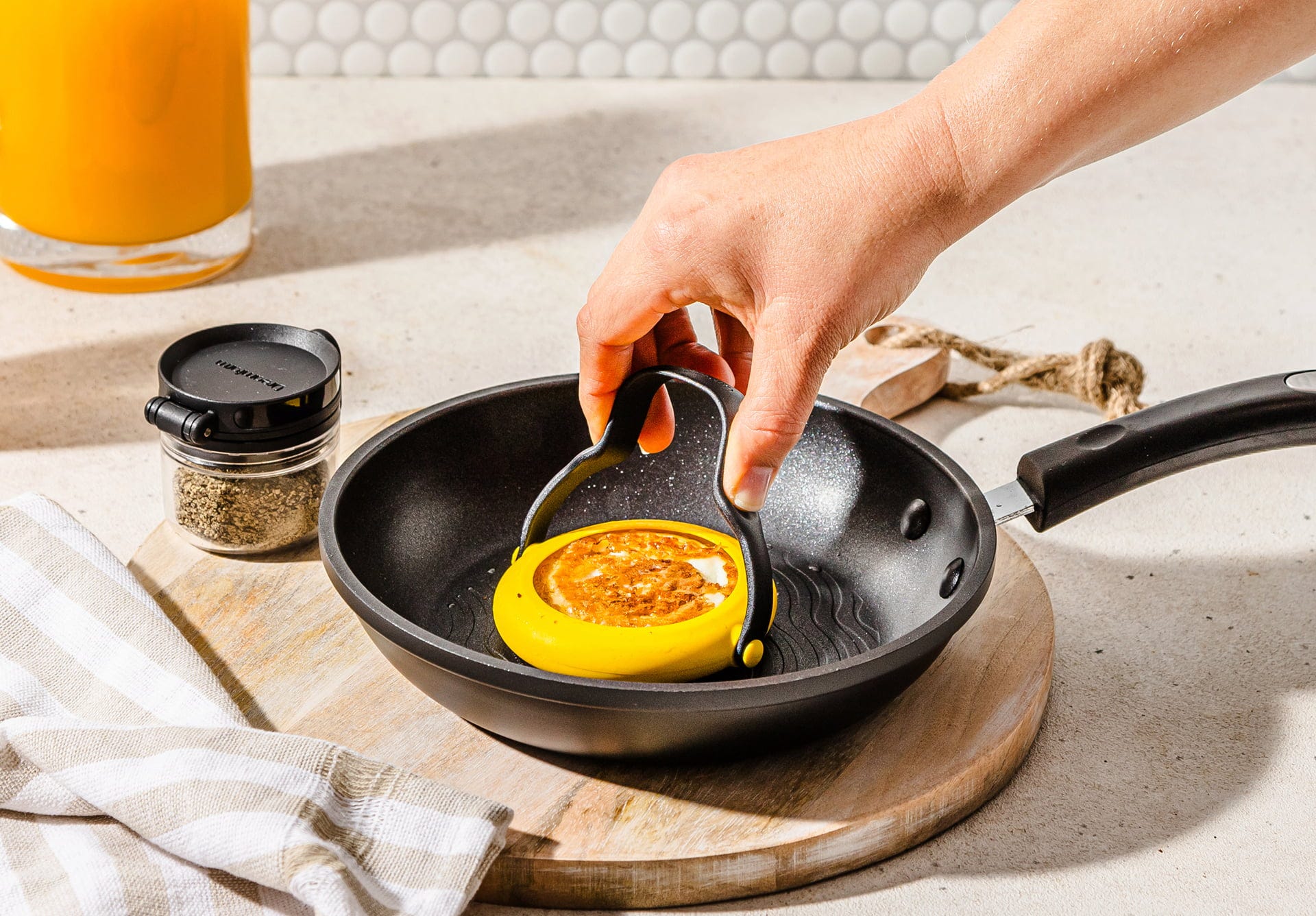Az okos belső gyűrűnek köszönhetően a tojást tisztán emeli meg, miközben a sárgája pontosan ott marad, ahol lennie kell. A rugalmas nyél közben gondoskodik a biztos tartásról, és gyerekjátékká teszi a tálalást. A hőálló szilikonból és nejlonból készült, BPA-mentes konyhai segédeszköz rendkívül tartós, és ideális a mindennapi használatra a tűzhelyen.