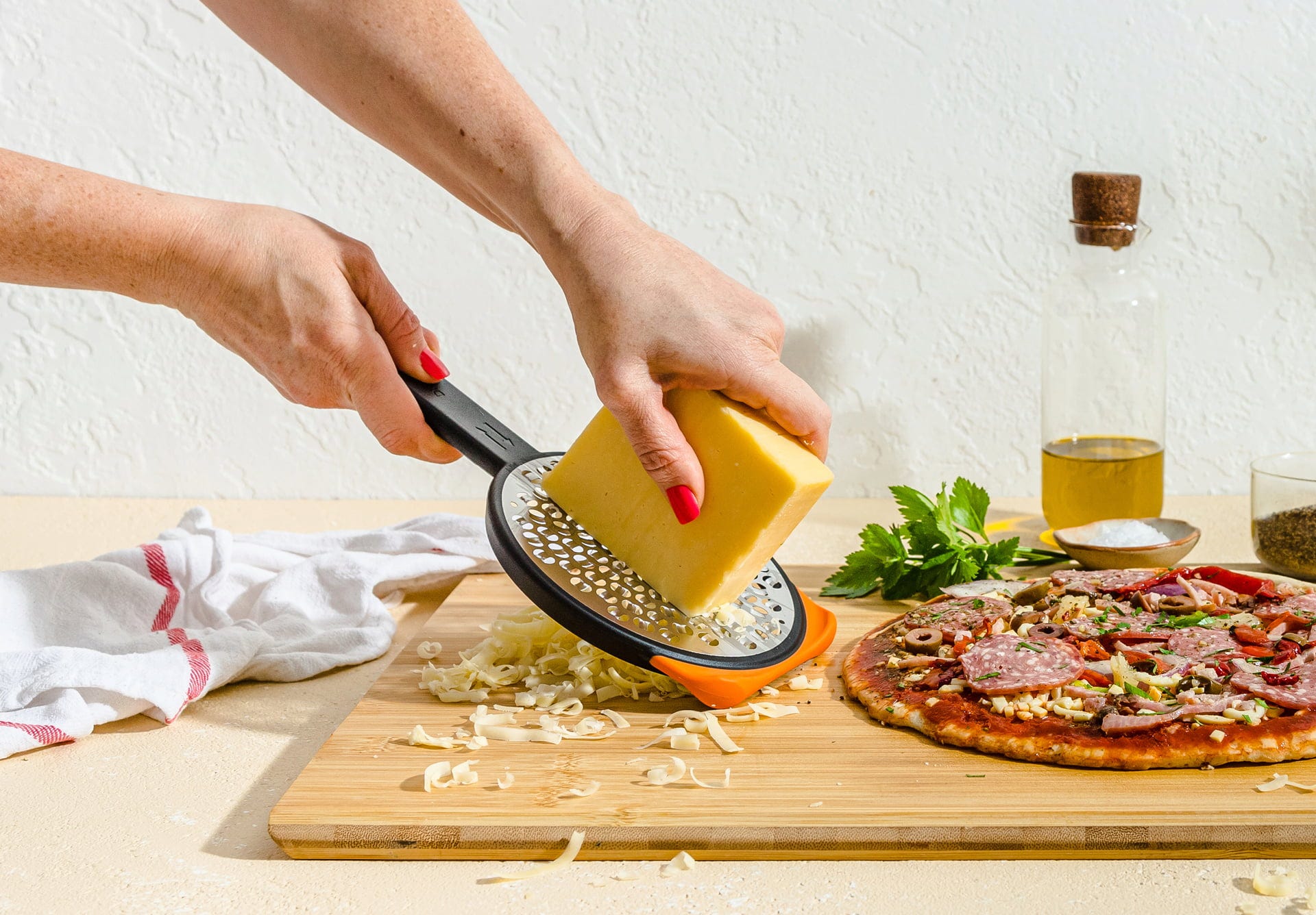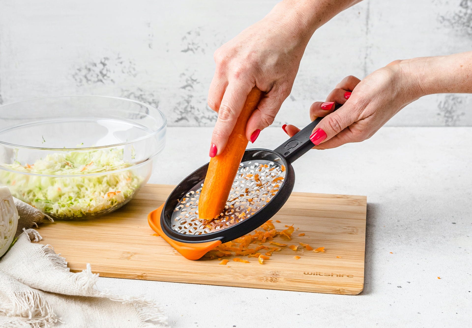 A Dreamfarm Ograte reszelővel még a nagy mennyiségű káposztát, hagymát vagy sajtot is rekordidő alatt változtathatja tökéletes reszelékké. A titok a nagyméretű, kör alakú reszelőfelületben rejlik, amely a kétoldalas pengéknek köszönhetően jelentősen hatékonyabb munkavégzést tesz lehetővé.