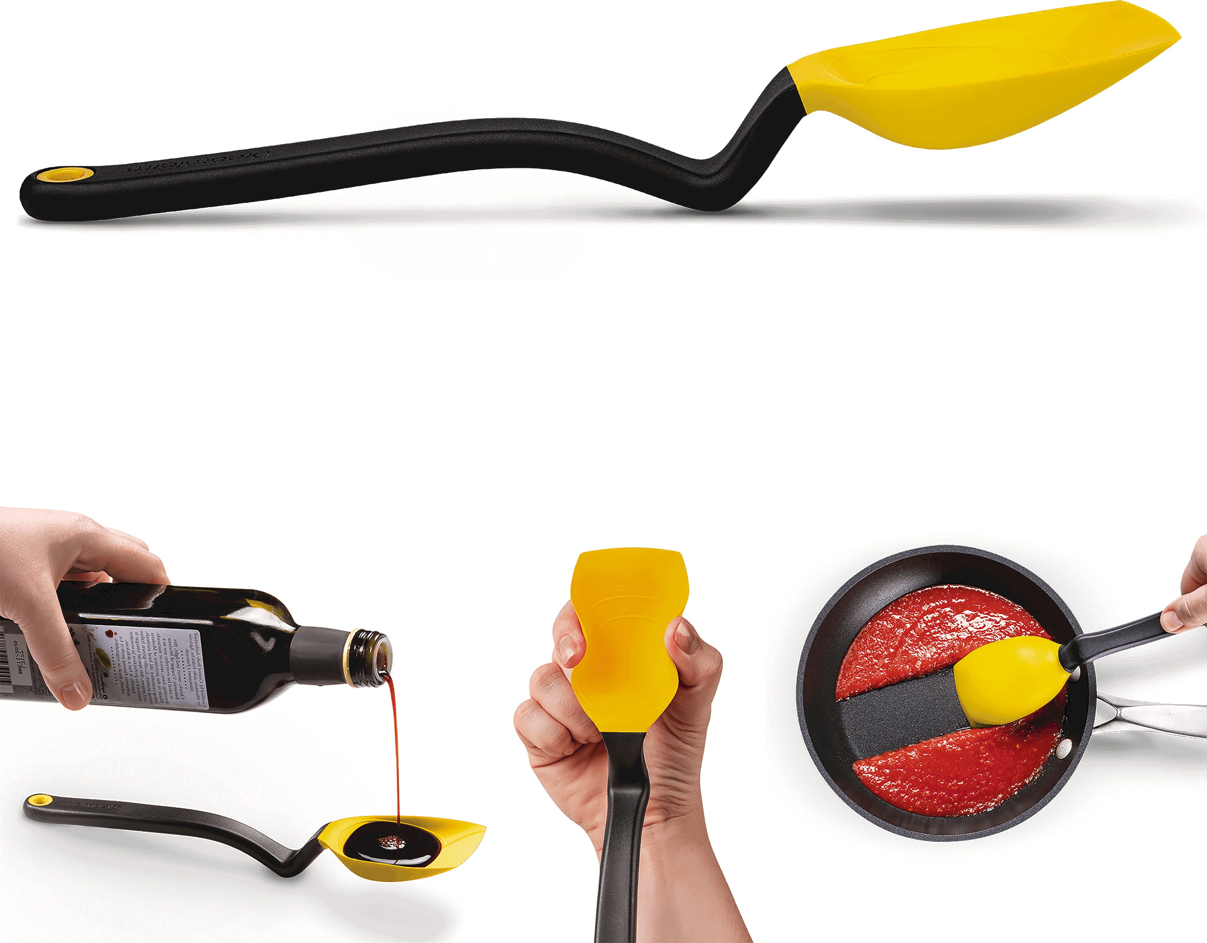 A Dreamfarm Supoon kanállal egy valódi multitehetséget szerezhet be a tűzhely mellé, amely egyetlen eszközben egyesíti a keverést, a merítést, a mérést és a kikaparást. Rugalmas szilikonfejének köszönhetően erőfeszítés nélkül elérheti a fazekak és serpenyők minden sarkát, hogy a maradékokat teljesen kikaparja, miközben az anyag megbízhatóan kíméli az Ön edényeit.