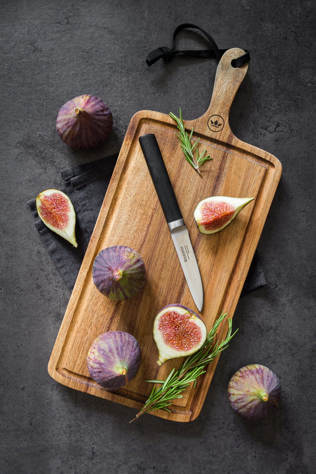 Ez a kiváló minőségű akácfából készült vágódeszka alkalmas reggeliződeszkaként, valamint sajtok, falatok és snackek dekoratív tálalására.