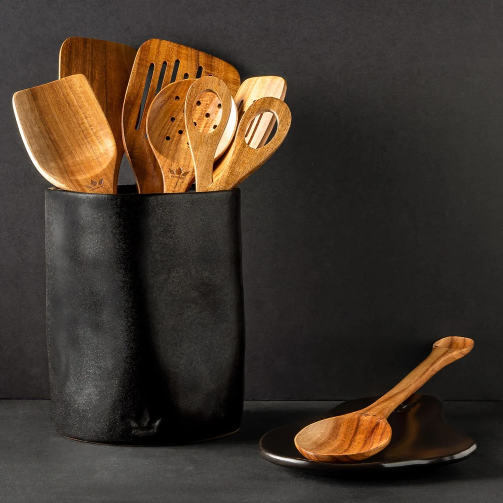 Ez a teljes egészében akácfából készült szett 8 népszerű konyhai eszközt tartalmaz. Kiváló minőségű kidolgozása, fényes felülete és természetes faerezete bármely konyha vizuális fénypontjává teszi – a főzés örömét is beleértve!