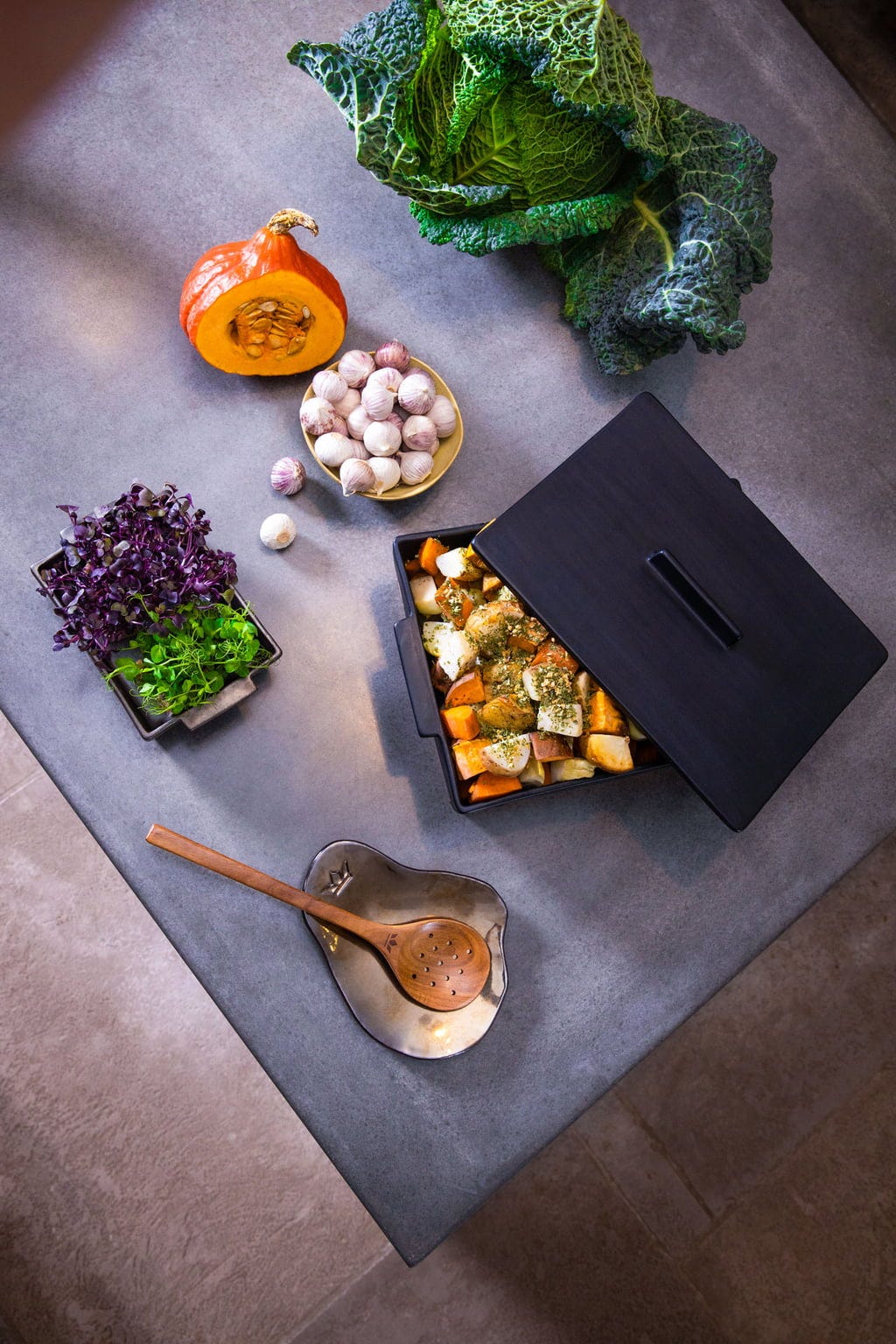 Ez a kézzel készített, kiváló minőségű kerámiából készült edény nemcsak kiváló anyagával és kidolgozásával nyűgöz le, hanem vonzó megjelenésével is. Hozzá illő fedővel érkezik sütéshez és pároláshoz, valamint egy praktikus natúr parafa alátéttel – tökéletes a különböző méretű edények kíméletes egymásra helyezéséhez, valamint stílusos tálaláshoz az asztalon.
