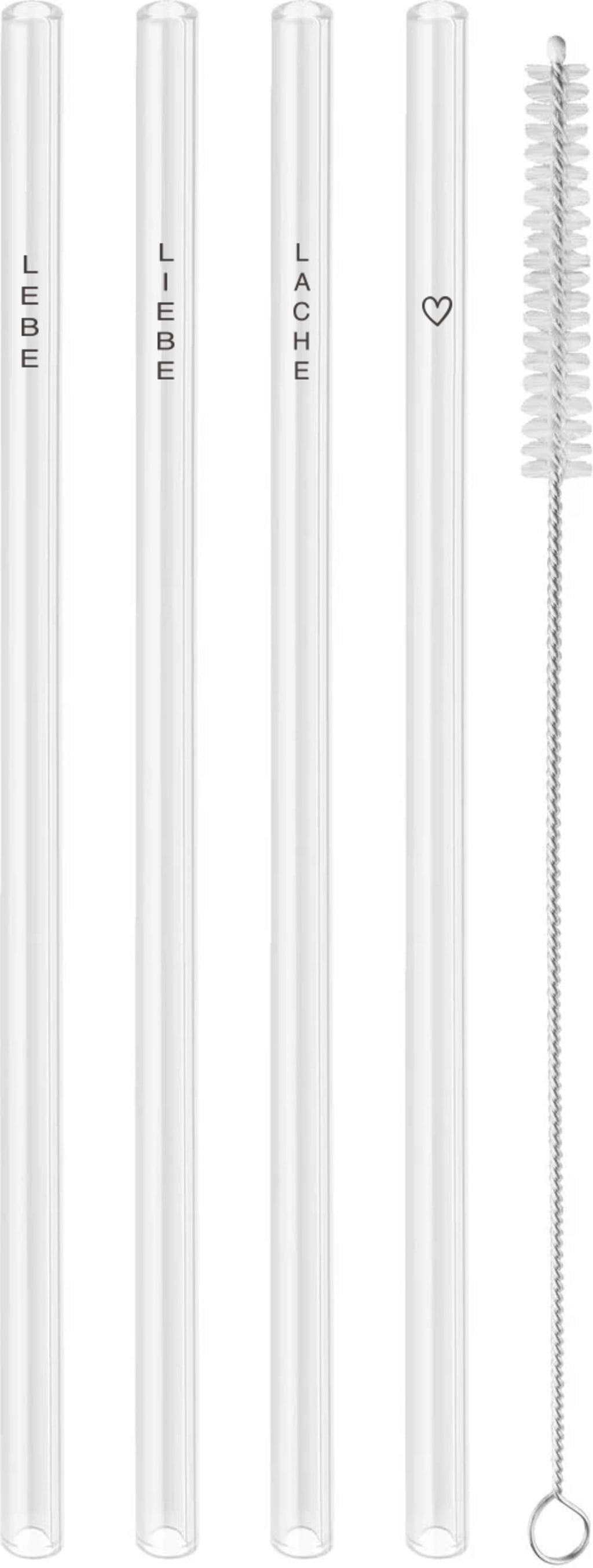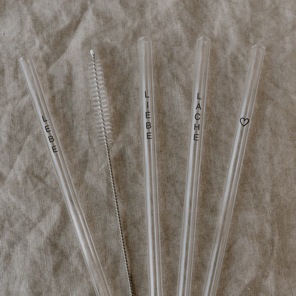 Boroszilikát üvegből készült, hőálló szívószálak elegáns fekete hangsúlyokkal. A szívószálak mosogatógépben vagy a mellékelt kefével tisztíthatók.