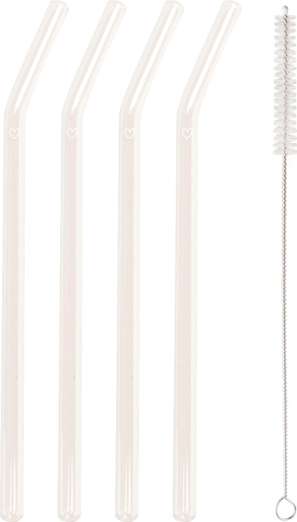 Boroszilikát üvegből készült, hőálló szívószálak gravírozott szívvel. A szívószálak mosogatógépben vagy a mellékelt kefével tisztíthatók.