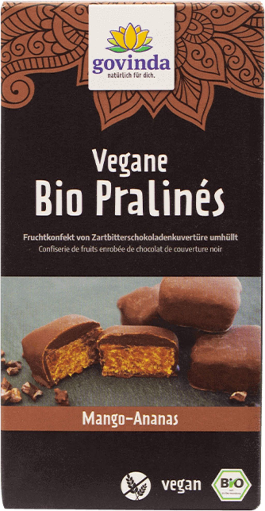 Élvezze ezt a finomságot! A Govinda vegán és gluténmentes bio pralinéja a legfinomabb étcsokoládéval és gyümölcsös töltelékeivel fogja lenyűgözni. A Govinda saját gyárában, kiváló minőségű bio alapanyagokból készült termékek.