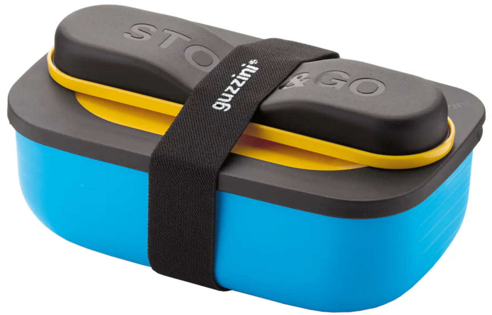 guzzini "Store&Go" uzsonnásdoboz szett utazó evőeszközzel, okkersárga
