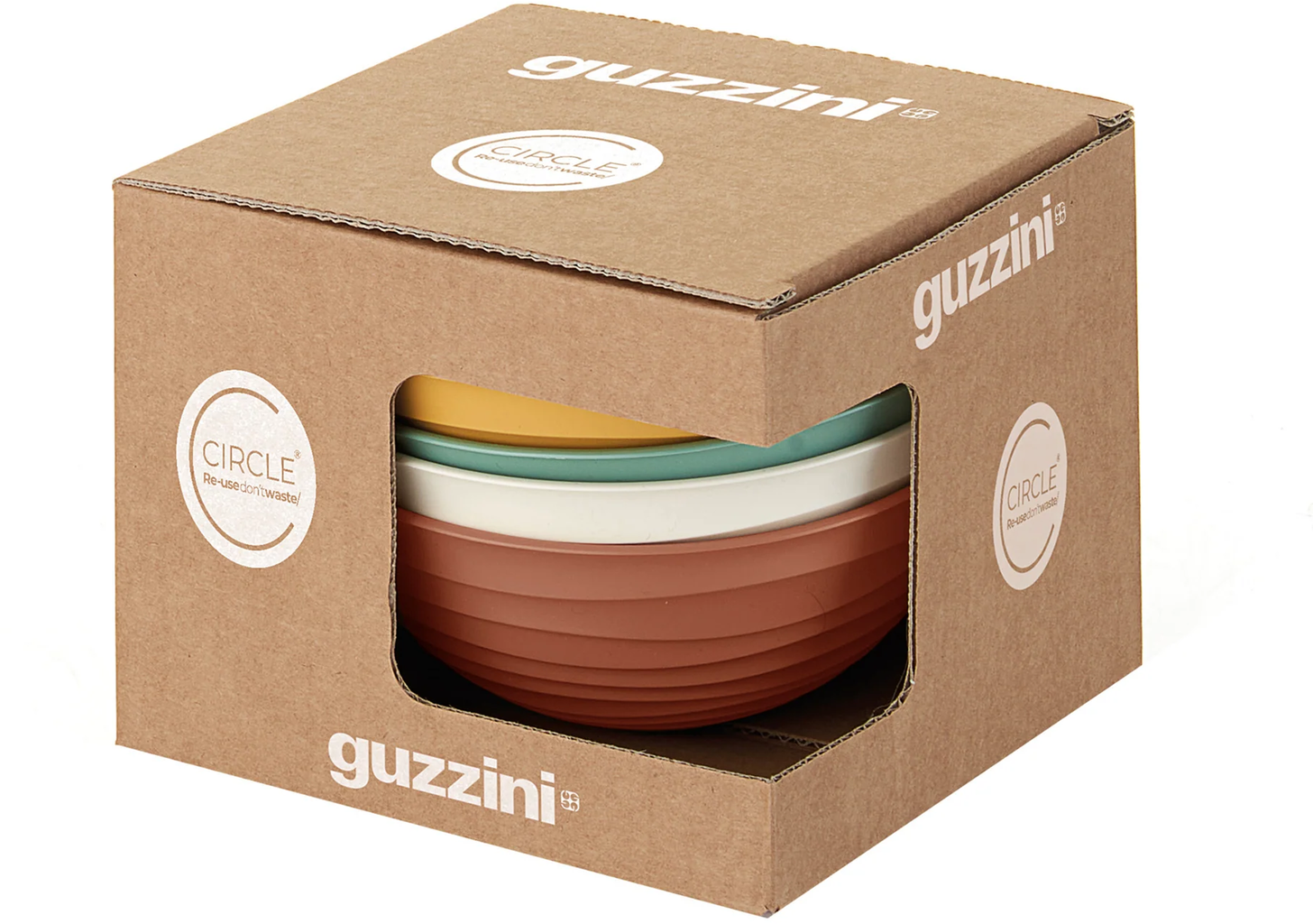 Guzzini "TIERRA": Ennek az egyedi sorozatnak minden darabja szándékosan szabálytalan megjelenésével a kézzel készített kerámiára emlékeztet, de 100%-ban újrahasznosított, egyszer használatos palackokból készül – környezetbarát, fenntartható és félreérthetetlenül olasz elegancia.