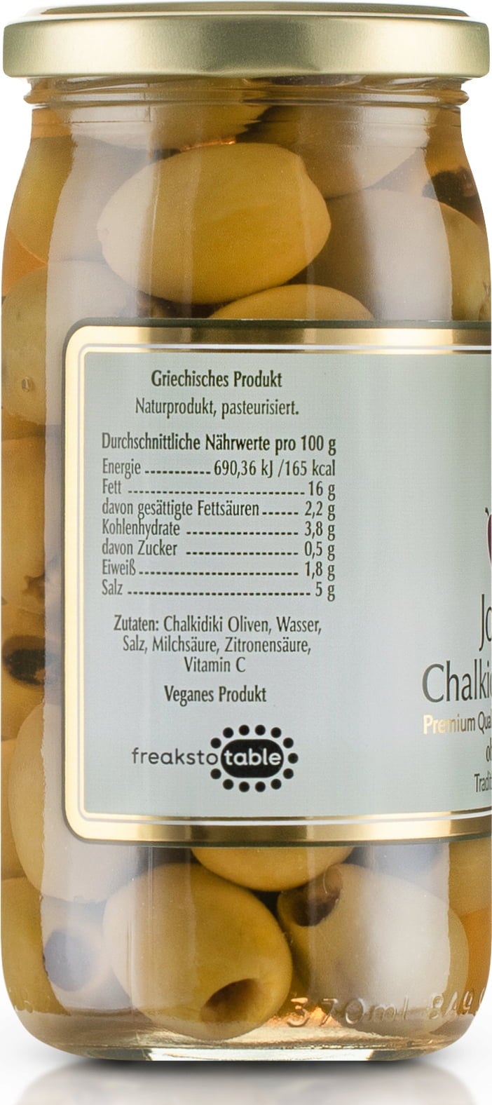 Mag nélküli olívabogyó a Chalkidiki régióból, Észak-Görögországból. A nagy, húsos gyümölcsök lágy ízűek, enyhén borsos aromával – ideálisak számos mediterrán ételhez.