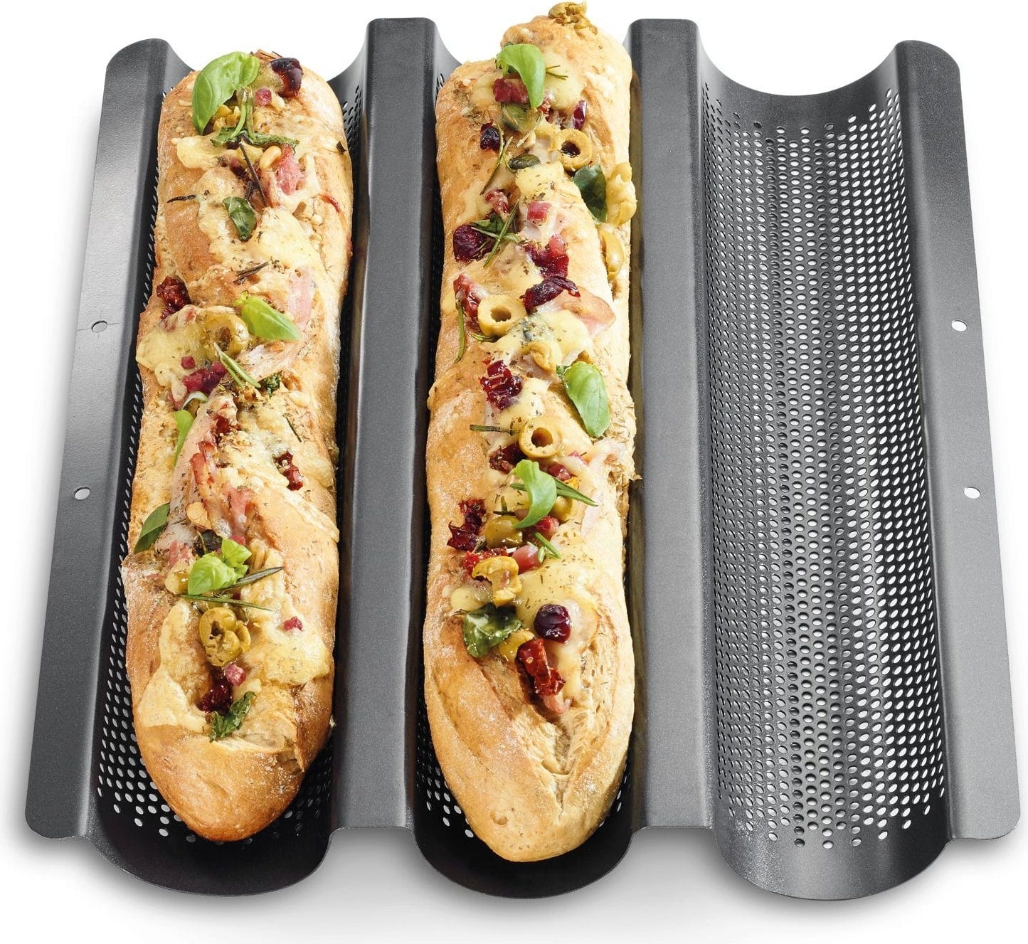 A praktikus Küchenprofi "BAKE ONE" sütőtepsivel akár három ropogós, egyedileg ízesített bagettet is varázsolhat az asztalra.