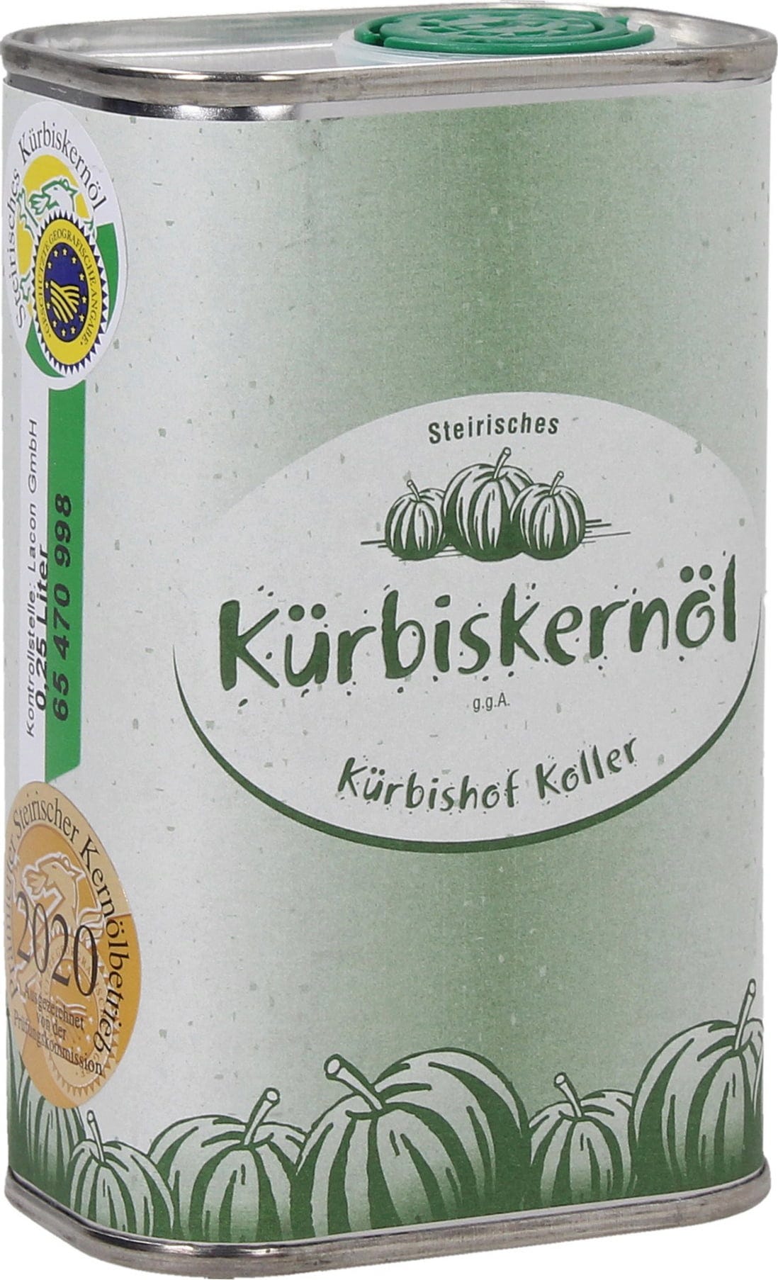 Frissen préselt! A Kürbishof Koller tökmagolaj hagyományosan feldolgozott, valamint egyedülálló diós aromával rendelkezik. Fémdobozba töltve nagyszerű retro megjelenést kölcsönöz az asztalon.