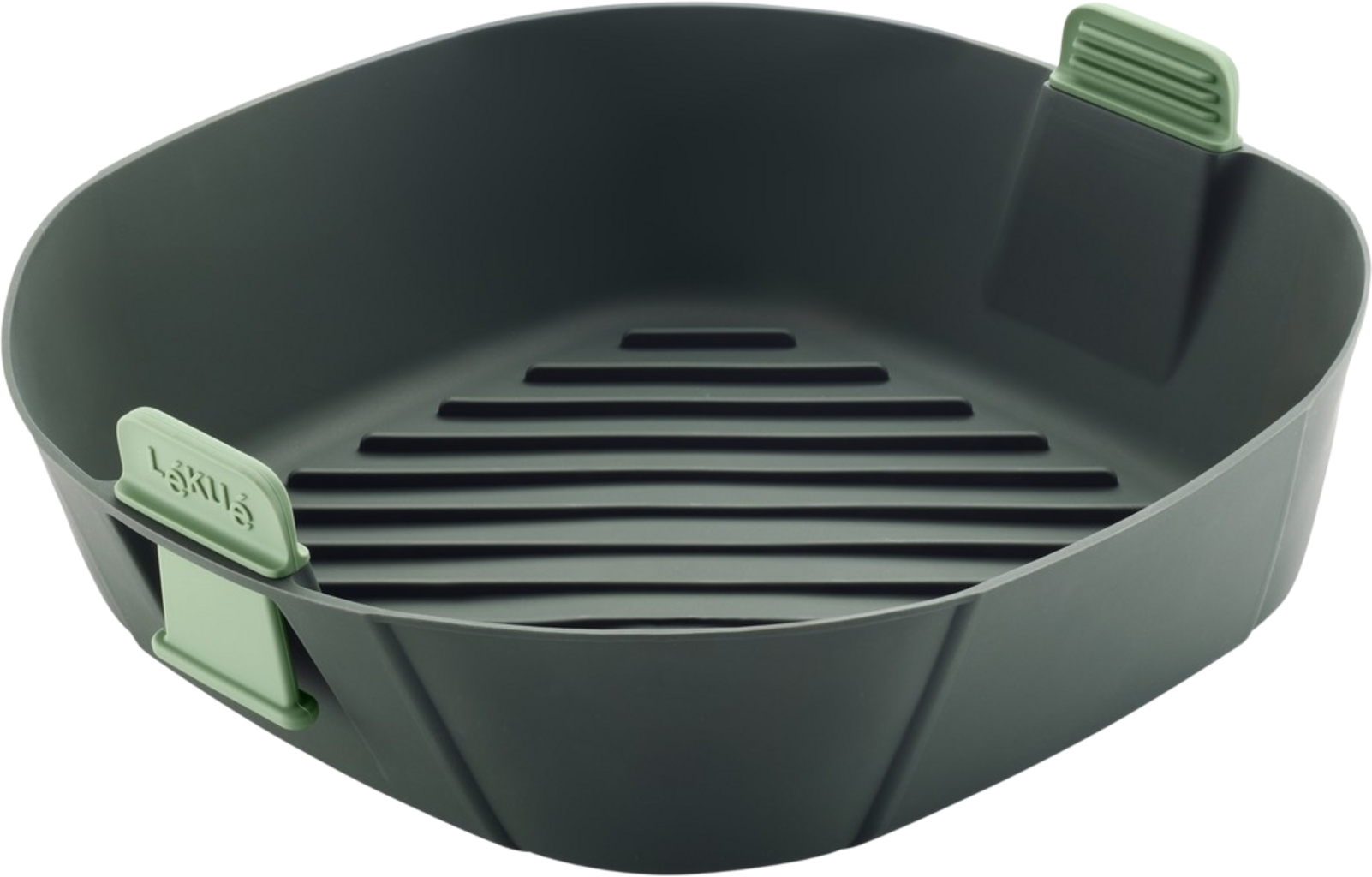 A Lékué forrólevegős sütőkosár XL az okos partner, hogy profi szintre emelje az Airfryer-élményt! Titka az alkalmazkodó, rugalmas sarkokkal ellátott designban rejlik, amely tökéletesen illeszkedik a különböző méretű és formájú forrólevegős sütőkhöz (ideális 5 l és 6,5 l közötti készülékekhez), így optimálisan kihasználja a sütőteret. Különösen praktikusak és átgondoltak a kihúzható tapadásmentes fogantyúk: a hőtől való nagyobb távolság és a biztonságosabb kivétel érdekében megemelheti vagy leengedheti őket.
