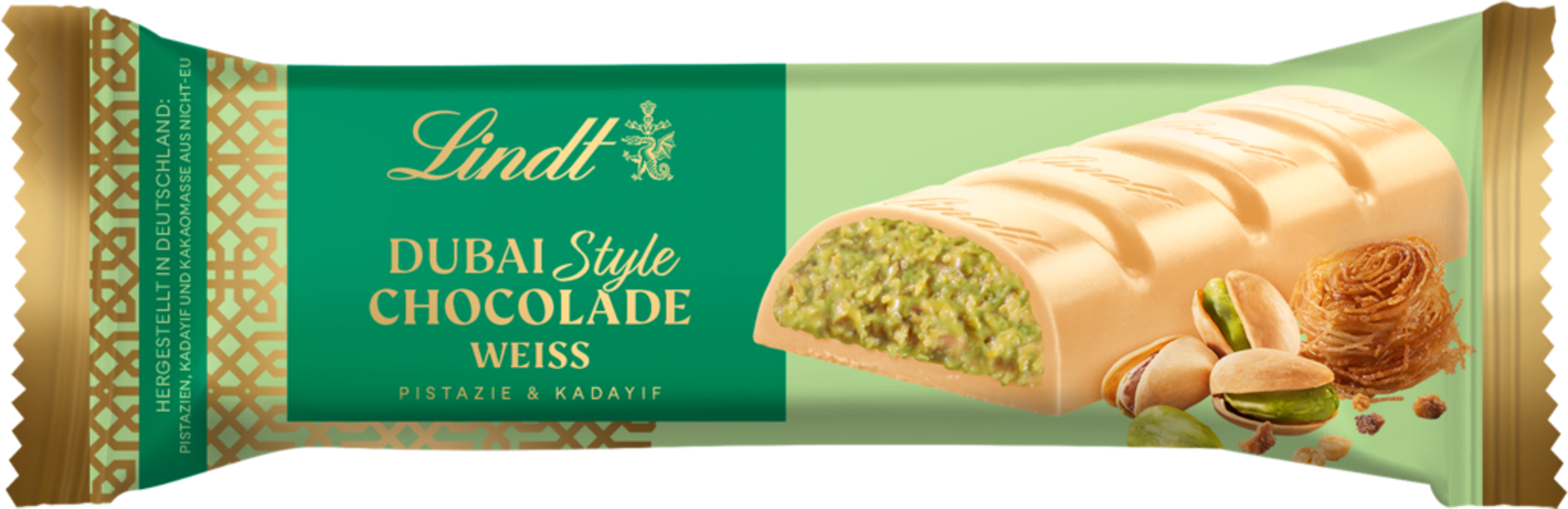 Fedezze fel a keleti ízeket a fehér Lindt Dubai Style szelettel! Ez a különleges szelet egy kulináris utazásra viszi el Önt, ahol a krémesség az izgalmas ropogós ízekkel találkozik.