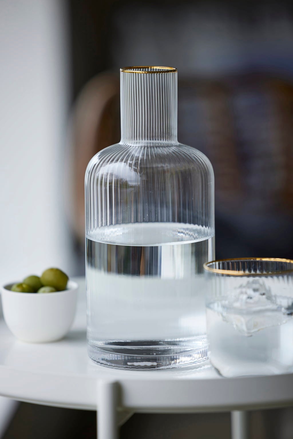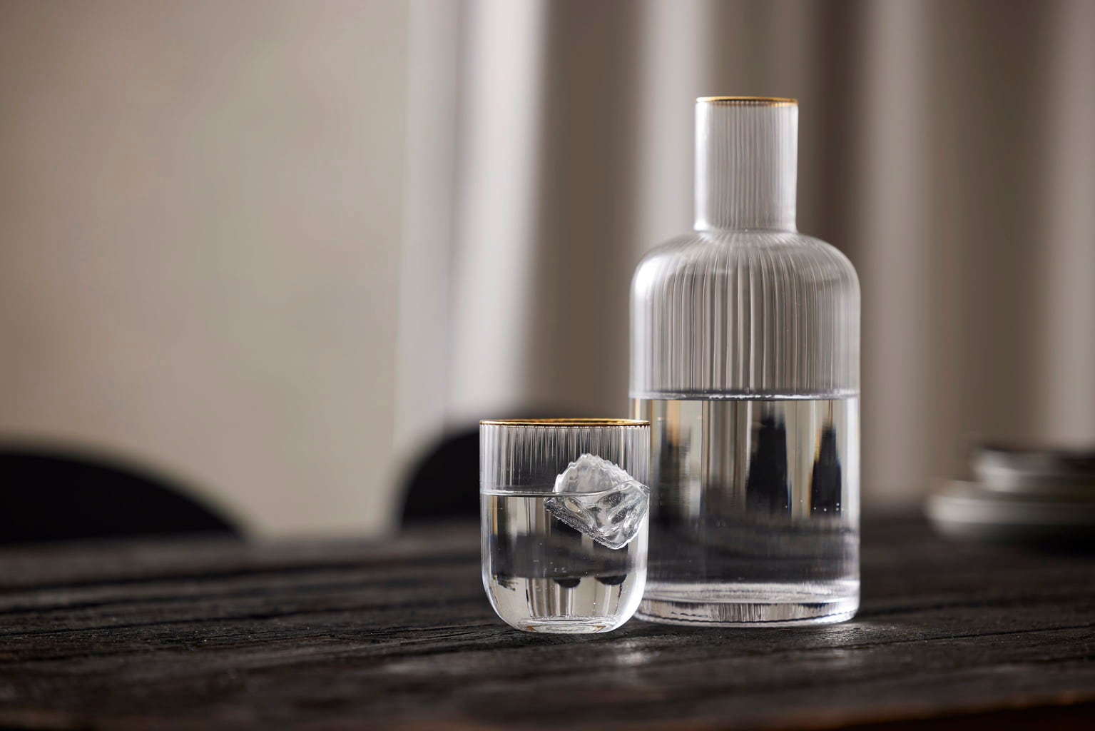 Kér még egy kis vizet? Tálalja vendégeinek stílusosan a vizet és más italokat ezzel a gyönyörű Lyngby Glas kancsóval! Lágy, lekerekített formája, bordázott kialakítása és finom arany pereme elegáns kiegészítője egy szépen megterített asztalnak.