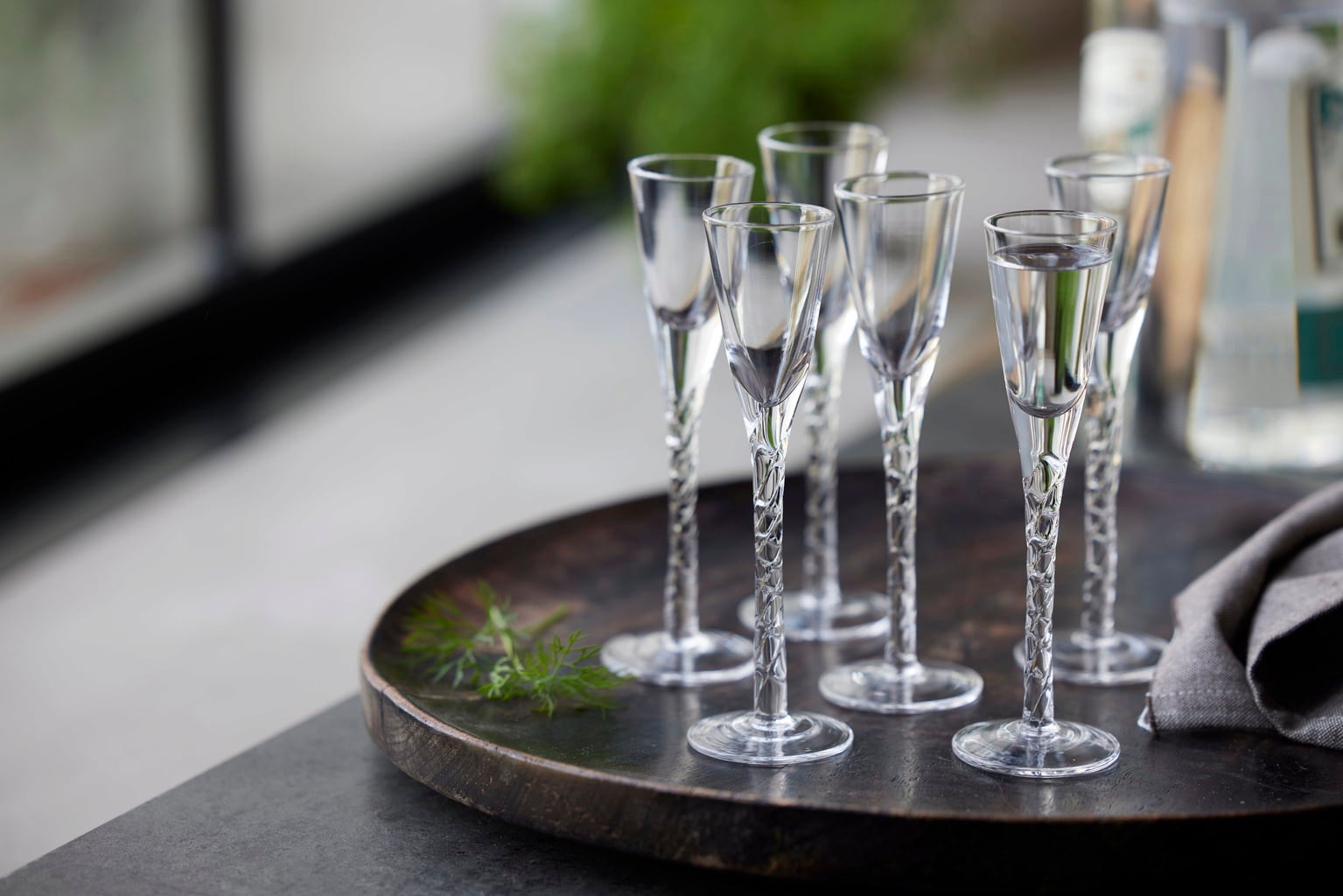 Ezek a Lyngby Glas felespoharak kézzel sodrott szárral rendelkeznek, ami különösen elegáns megjelenést kölcsönöz nekik. A poharak szájjal fújtak és 25 ml űrtartalmúak – ideálisak arra, hogy egy pohár pálinkát szolgáljunk fel vendégeinknek egy kiadós étkezés után.