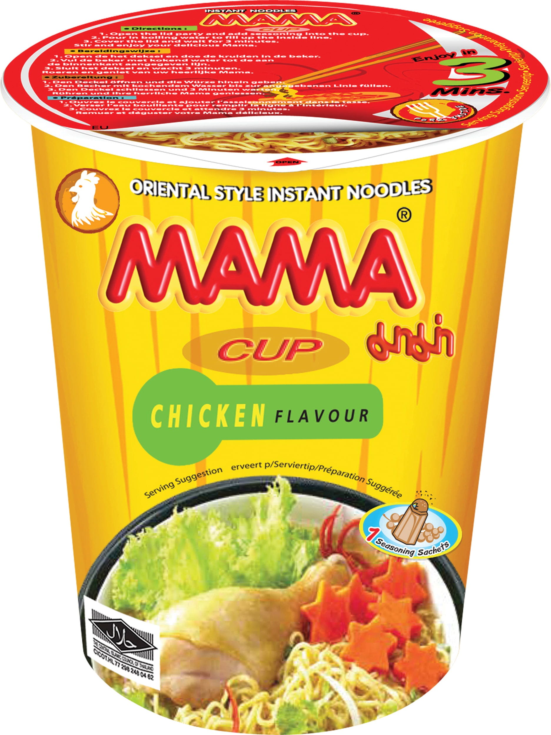Ez a MAMA Instant tészta lágy csirke alaplevet kínál rugalmas búzatésztával kombinálva, praktikus poharas formátumban. Tökéletes egy gyors étkezéshez.