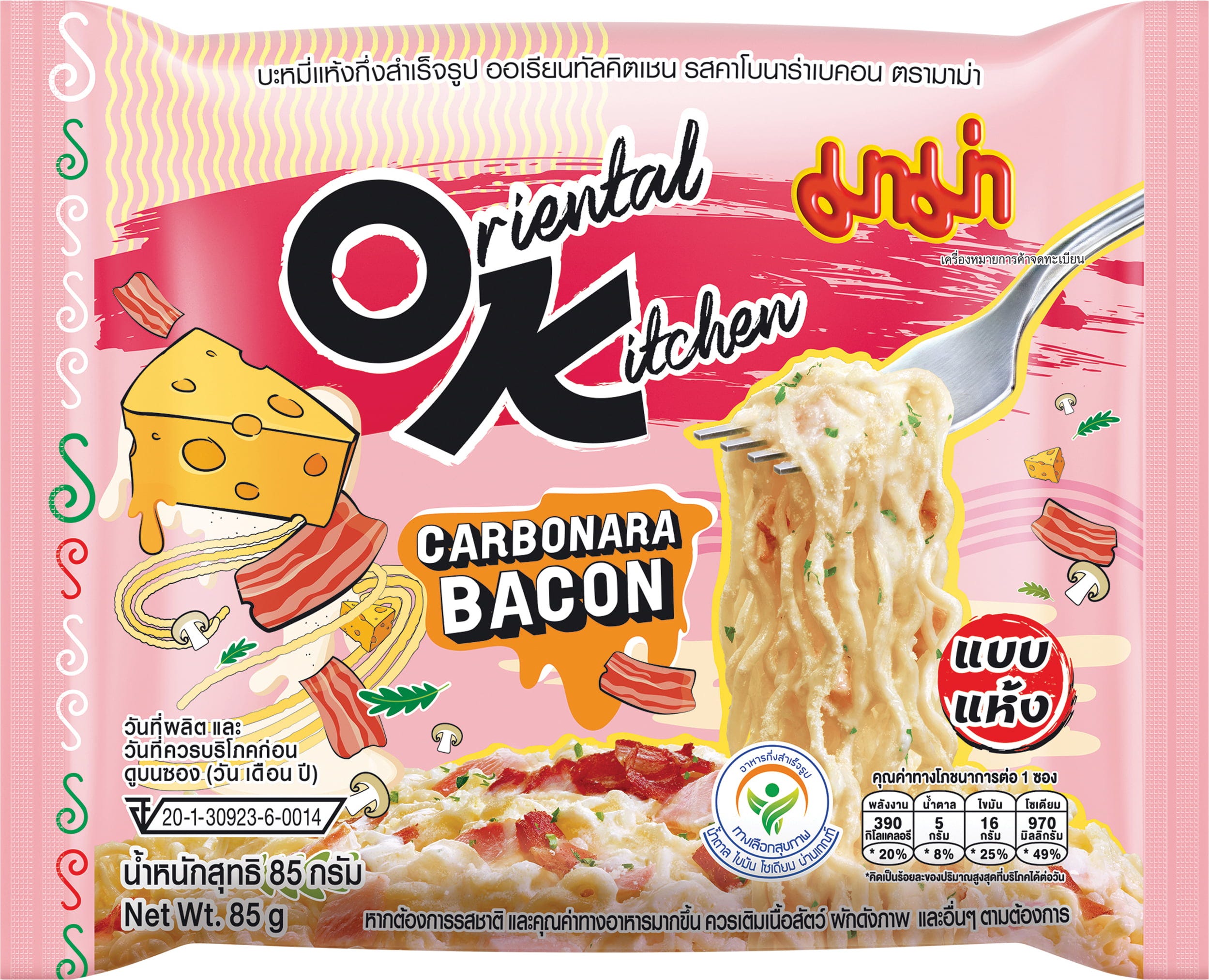 Ez a MAMA instant étel az ázsiai tésztakultúrát kombinálja az olasz carbonara szósz klasszikus ízével és a füstös szalonna aromájával.