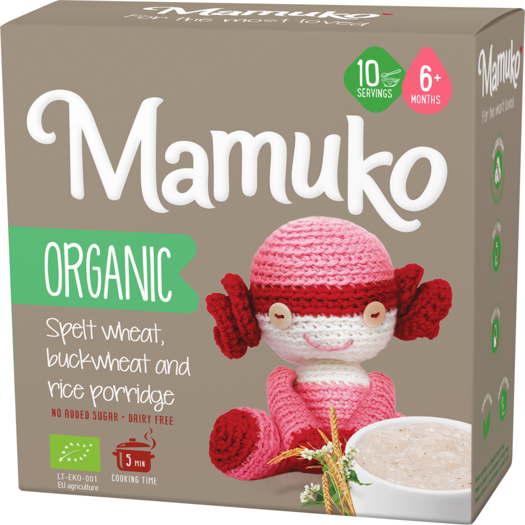 Mamuko bio tönkölybúzából, hajdinából és rizsből készült kása - babáknak 6 hónapos kortól