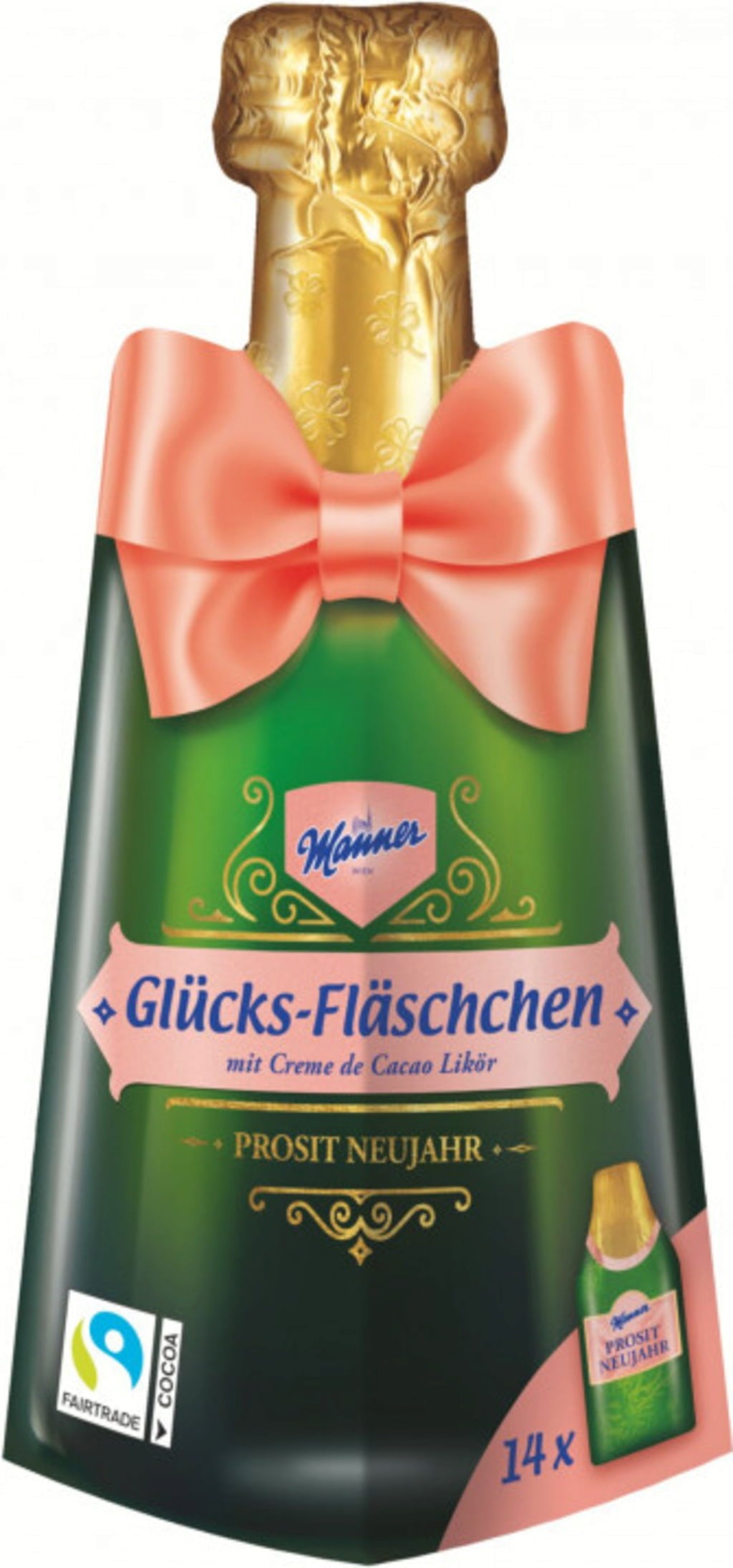 Boldog új évet! A kis szerencsehozó üvegek segítségével különösen édes módon köszöntheti az új évet. A ropogós csokoládé kívülről, a finom Creme de Cacao likőr belülről teszi egy különleges élménnyé az üvegecskéket, amellyel az új év csak jól kezdődhet.