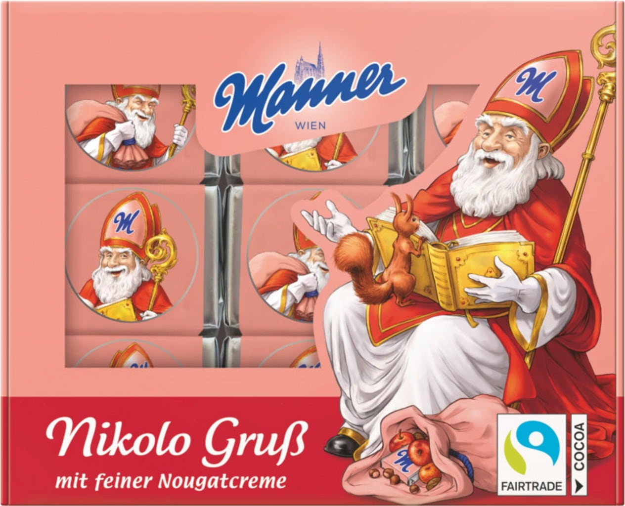 Az "Üdvözlet a Mikulástól" minden édesszájú számára nagyszerű ajándékötlet. Kilenc finom nugátkrémmel töltött tejcsokoládé kocka. Egy nagyszerű ajándékötlet