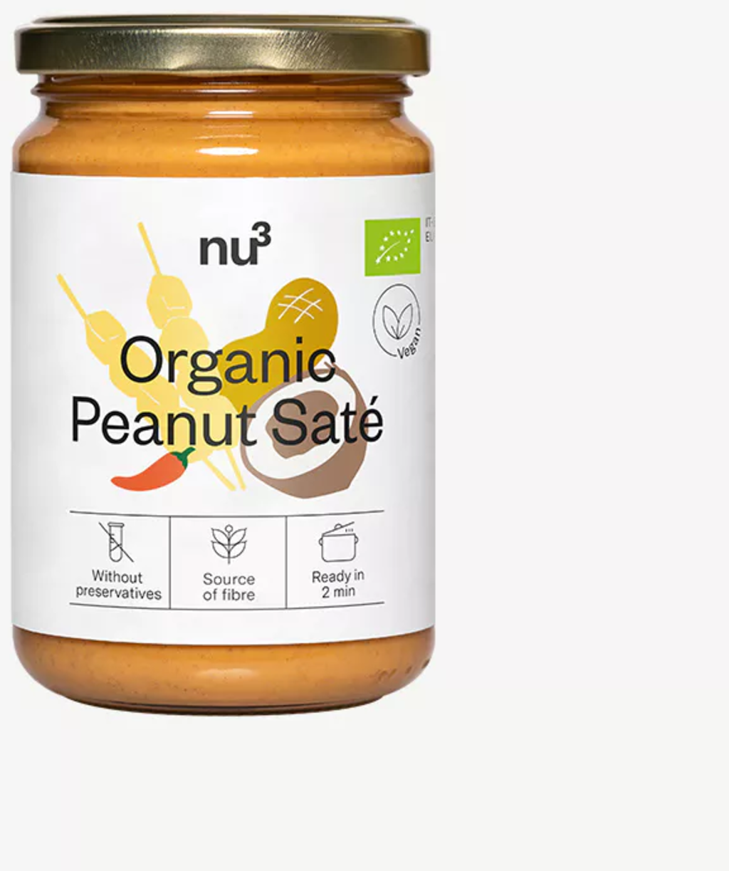 Fedezze fel a nu3 krémes, ízletes földimogyorós satészószt. A pörkölt földimogyorót, a kókusztejet, a paradicsomot és az ázsiai fűszereket kombinálja, hogy egy sokoldalú szószt hozzon létre - ideális bowl-okhoz, zöldséges ételekhez vagy pácként. Tisztán növényi alapú, vegán és 100%-ban bio alapanyagokból készült.
