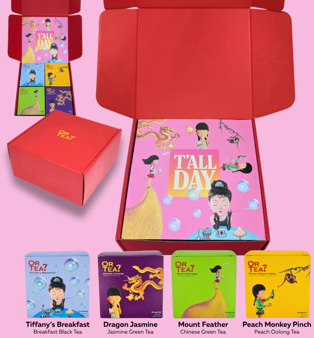Egy doboz. Négy keverék. Tea egész napra. A T'ALL DAY ajándékkészletet gondosan válogattuk össze, hogy reggeltől estig tökéletes teaélményt nyújtson. Bármit is hoz a nap, ez a doboz mindig az ideális keveréket tartalmazza az adott pillanatban.