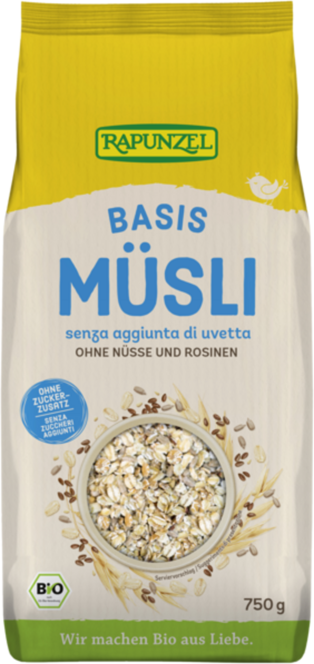 Tökéletes azok számára, akik szeretik saját maguknak elkészíteni reggeli müzlijüket friss gyümölccsel vagy más hozzávalókkal. A Rapunzel Alapmüzli nem tartalmaz sem dióféléket, sem szárított gyümölcsöket. A receptúra hozzáadott cukortól mentes. A magvas, teljes értékű íz tisztán a legkülönfélébb gabonapelyhek, lenmag, szezámmag és napraforgómag kiadós keverékéből bontakozik ki.