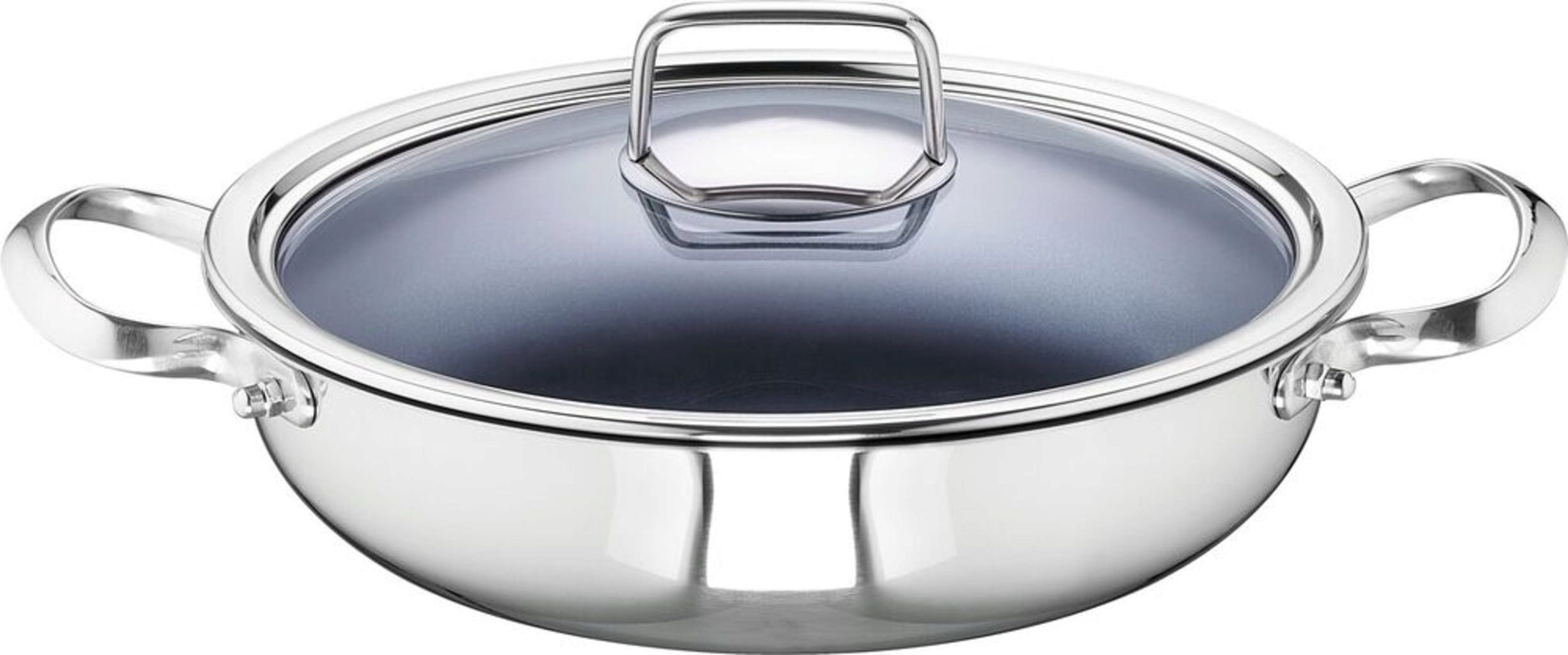 Magas peremének köszönhetően ez a párolóserpenyő ideális fűszeres pörköltek vagy finom, krémes mártásos raguk készítéséhez. Természetesen hirtelen sütéshez is használható. A karcálló XXStrong-diamond tapadásmentes bevonat biztosítja, hogy az étel ne ragadjon le az aljára.
