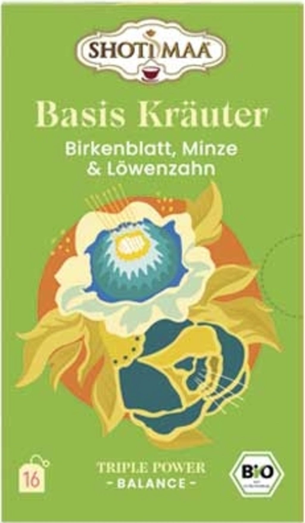 Shoti Maa Bio "Basis" gyógynövénytea - Nyírfalevél, menta és gyermekláncfű, 16 teafilter (32 g)