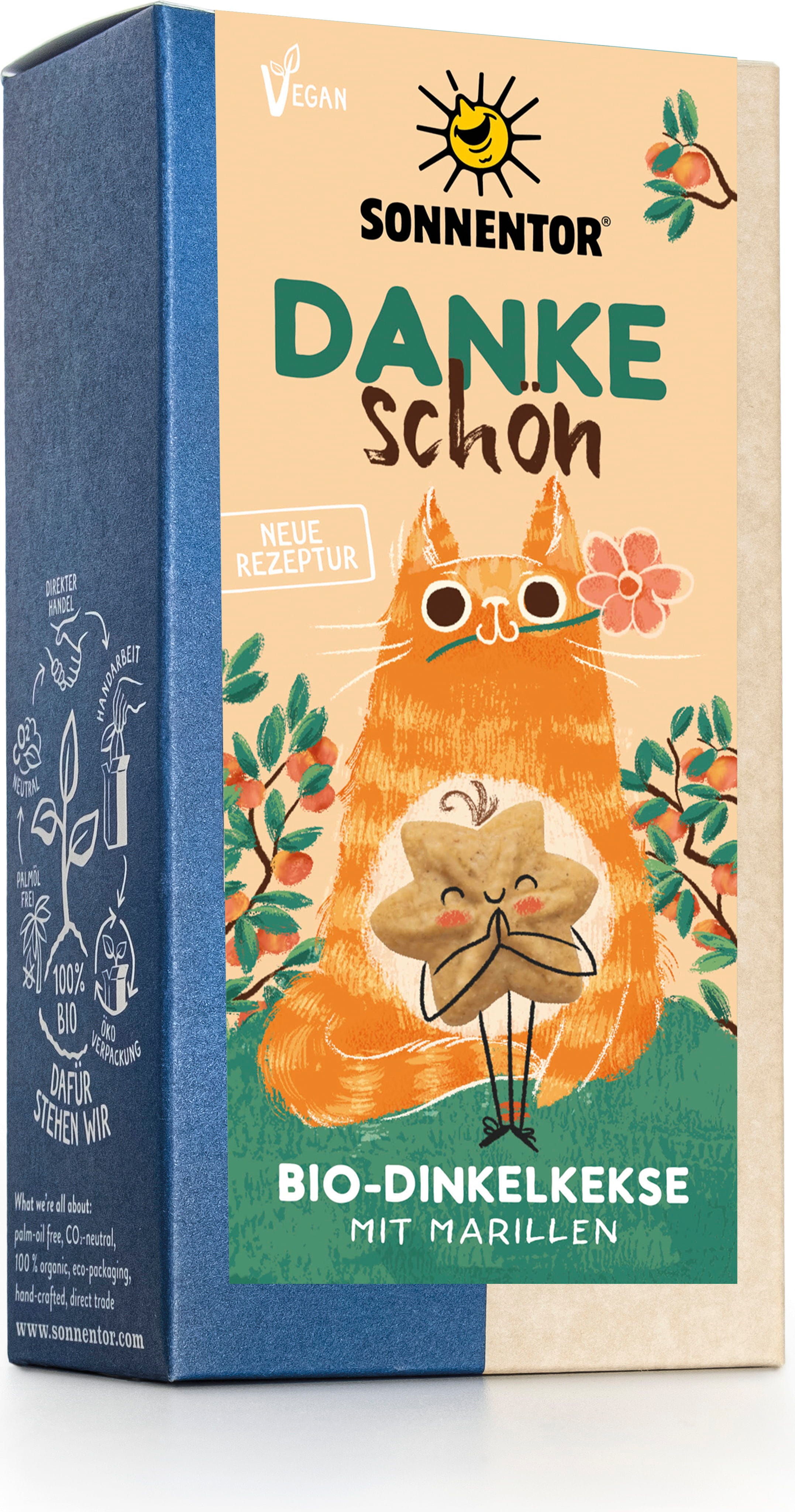 Szeretne köszönetet mondani egy segítőkész embernek? A legjobb bio-minőségű Sonnentor "Köszönöm" keksz segítségével könnyedén megteheti! A keksz kizárólag a legjobb összetevőket tartalmazza: tönkölyliszt, sárgabarack nektár, eper, citromolaj, vanília, gyömbér és virágok. Diós íz finom gyümölcsösséggel, illetve a gyömbér fűszerességével és vaníliával kiegészítve.