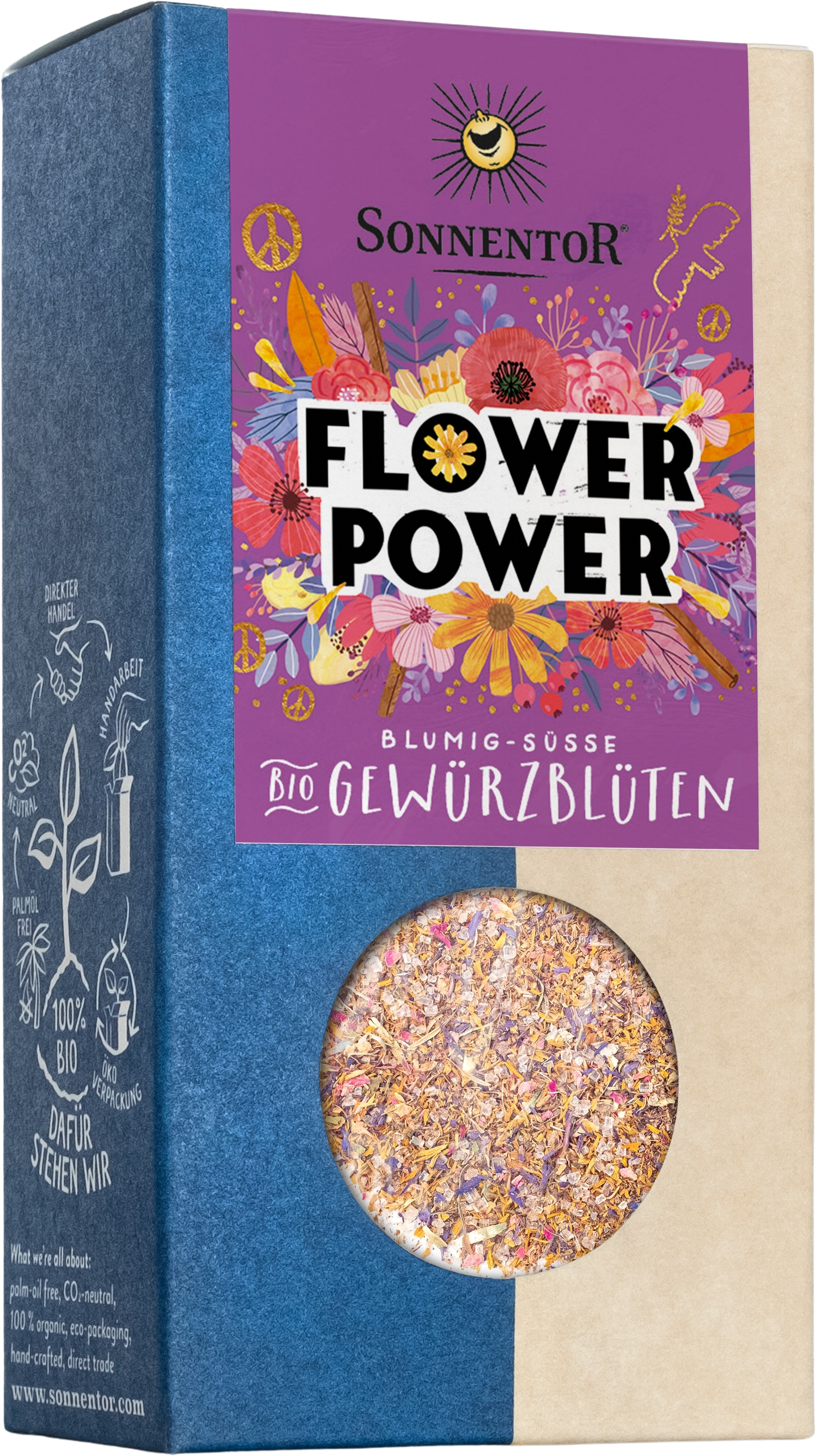 A színes virágok elbűvölőek! A fűszeres édességtől színesek és jók lesznek a desszertek és sütemények. Ha fel akarja díszíteni a tejszínhabot, krémeket vagy fagylaltot, akkor mindenképpen tartania kell otthon Flower Power keveréknek. A Flower Power segítségével ízutazásra indulhat a színes hippi generáció éveibe, akik kétségtelen, hogy nagyra értékelték az élet édes oldalát.