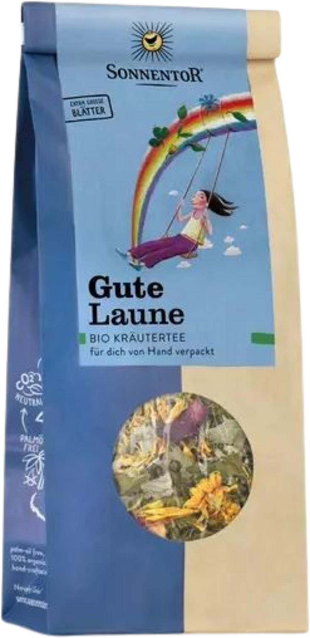 A Jó kedv-teakeverék az egyik legrégebbi és minden bizonnyal a legnépszerűbb gyógytea keverék a Sonnentor választékában. A keverék sok gyermek kedvence, édes-lágy íze miatt.