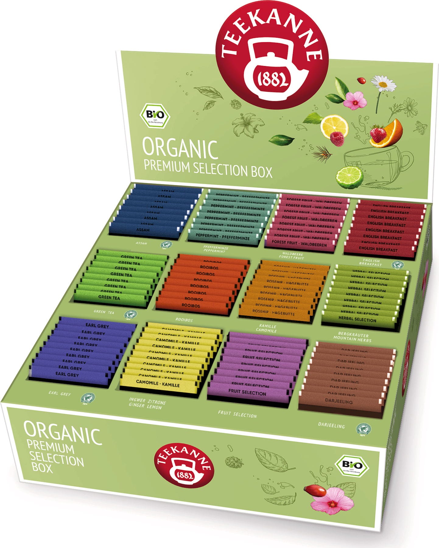 Fedezze fel kedvenc teafajtáit a legmagasabb bio-minőségben a Teekanne BIO Organic Premium Selection Box segítségével. Ideális gasztronómiához vagy szenvedélyes teafogyasztóknak, akik nem szeretnének leragadni egy-egy típusnál.