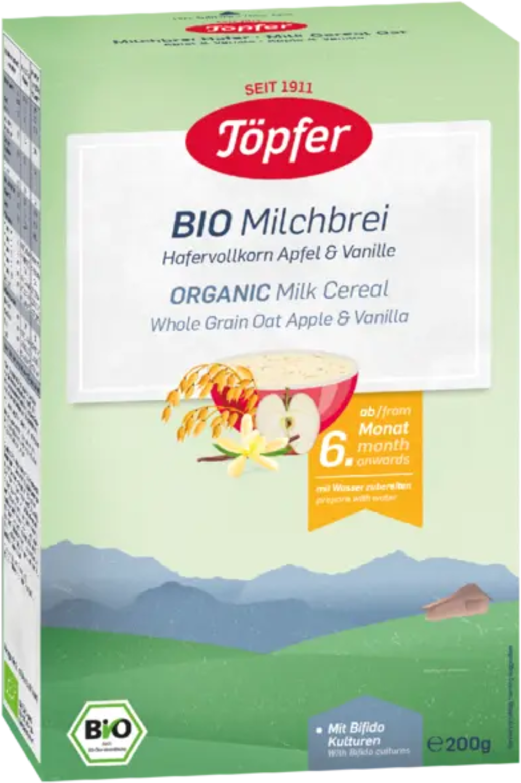 Ez a finom Töpfer bio tejes kása 6 hónapos kortól alkalmas csecsemők számára, és optimálisan kiegészíti a hozzátáplálási tervet. A kiváló minőségű almapehellyel és egy csipetnyi vaníliával készült receptúra gyümölcsös ízrobbanást varázsol, amely nemcsak a kicsik ízlését nyűgözi le, hanem a nagyobb gyermekeknek és felnőtteknek is ízlik. A bio tejjel készült és bifido-kultúrákkal dúsított keverék harmonikus kombinációt kínál, amely egyszerre finom ízű és változatosságot biztosít. Akár önmagában fogyasztva, akár kreatív alapként más finom kombinációkhoz, könnyen gyermeke igényeihez igazíthatja.