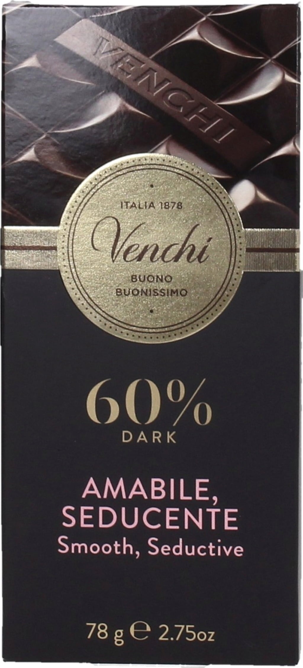 A Venchi 60%-os csokoládé az intenzív kakaóízt finom édességgel kombinálja – tökéletesen kiegyensúlyozott az igazi csokoládéélményért. Kiváló alapanyagokból készült, gluténmentes, pálmaolajmentes, és igazi kényeztetés minden napra.